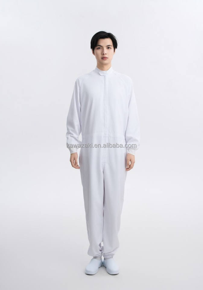 เสื้อคลุมทำงานทำจากโพลีเอสเตอร์100% กันไฟฟ้าสถิตพร้อมโลโก้ตามสั่งสำหรับเครื่องแบบอุตสาหกรรมอาหาร