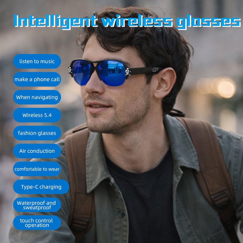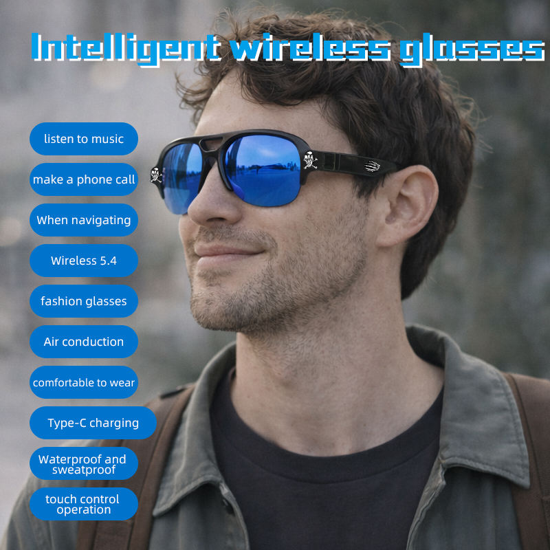 F08แว่นกันแดดไร้สายสำหรับผู้ชายหรูหราที่สุดสีฟ้าสุดหรูหูฟังโพลาไรซ์เลนส์โพลาไรซ์ประเภท-C ชาร์จ Ai ผู้ช่วยเล่นเพลงโทรศัพท์มือถือ