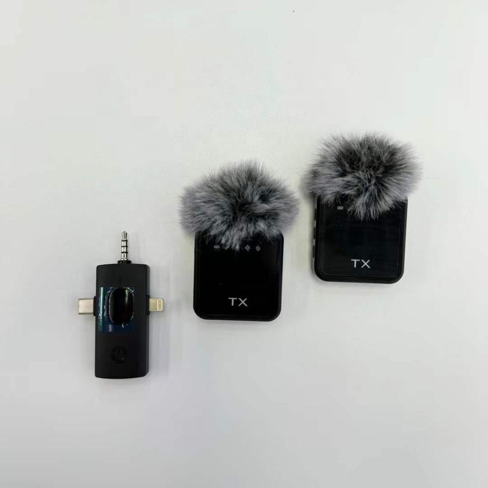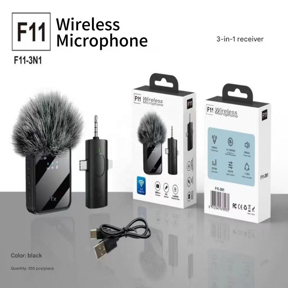 F11ไมโครโฟนไร้สายแบบพกพา F11-2คู่แบบ3-in-1บันทึกเสียงและวิดีโอสำหรับมือถือ vlogging iOS เข้ากันได้