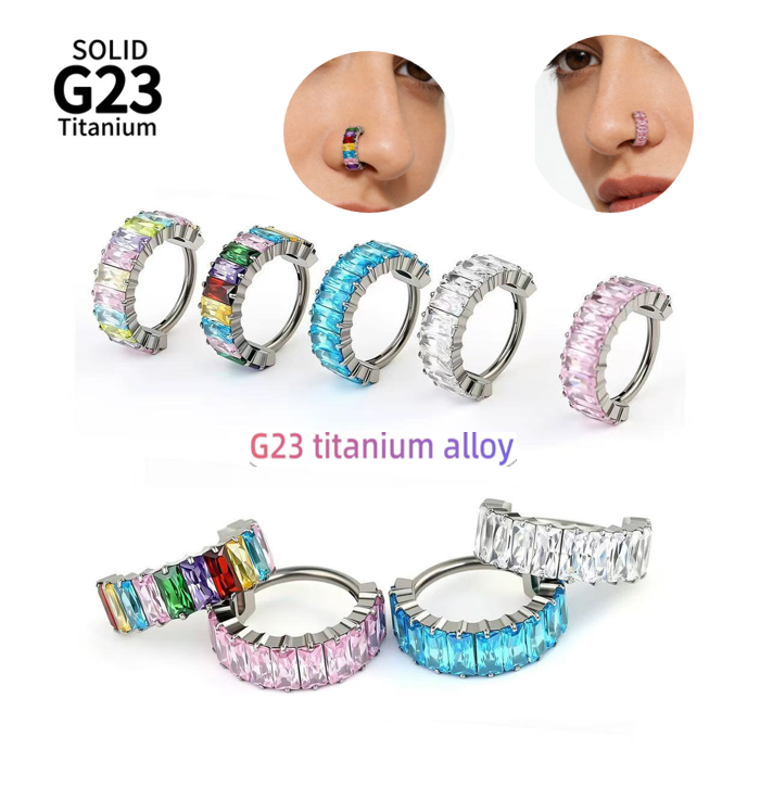 แหวนจมูกไทเทเนียมอัลลอย F136 แหวนน้ำตาลไอซ์ ประดับเพชรซิคอนหลากสี แหวนแบบปิด ไทเทเนียม G23 เครื่องประดับเจาะหู ของขวัญเครื่องประดับ