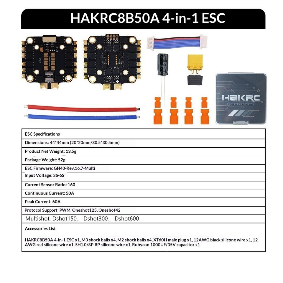 F722 V2 8Bit 50A Fly Tower FC 2-6S ESC for FPV Racing Drone Made in China