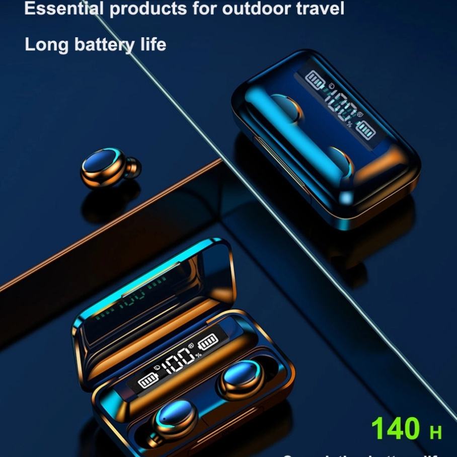 F9-5หูฟังไร้สาย TWS สำหรับเล่นกีฬาขนาดมินิหูฟังลดเสียงรบกวนแบบไฮไฟแผงดิจิตอล LED แสดงพาวเวอร์แบงค์