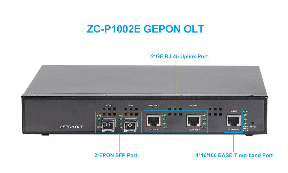 FACTORY Hot Sale! ZC-P1002E 2*EPON+2*GE Uplink Port EPON OLT