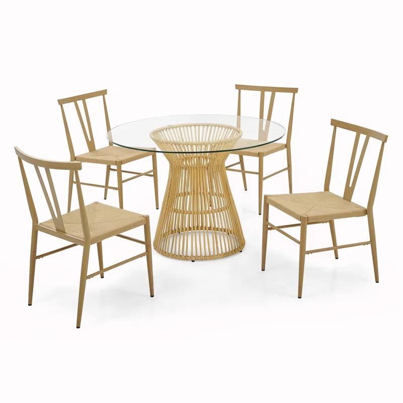 ราคาโรงงาน! ชุดโต๊ะรับประทานอาหารหวายสำหรับห้องครัวห้องนั่งเล่นและห้องรับประทานอาหาร