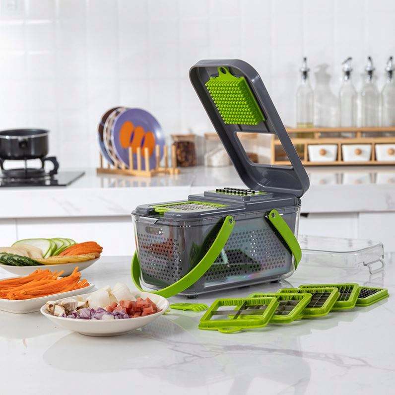 เครื่องจักรแปรรูปผักและผลไม้ขายส่งจากโรงงาน เครื่องตัดผักแบบ ABS ดีไซน์ทันสมัย 22in1 เครื่องสับผัก
