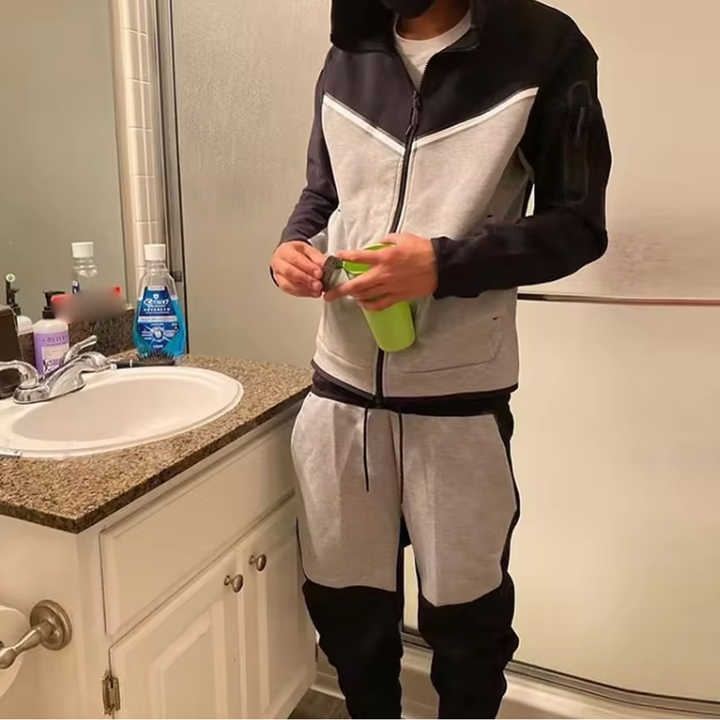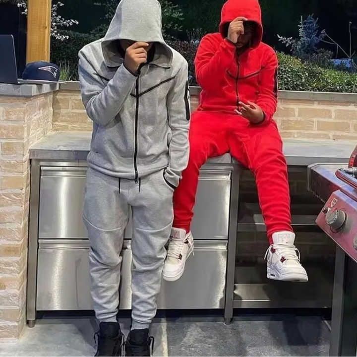 ชุดวอร์มเทคโนโลยีสำหรับผู้ชายชุดวอร์มเล่นกีฬาสองชิ้นสำหรับใส่วิ่งโลโก้ได้ตามต้องการฤดูใบไม้ร่วง