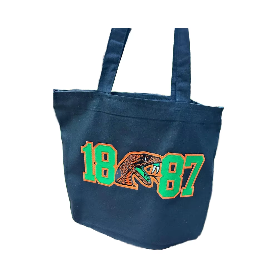 FAMU Florida A & M กระเป๋าผ้าใบปักลายมหาวิทยาลัยพร้อมดีไซน์เปิดเพื่อความสะดวกในการช้อปปิ้ง