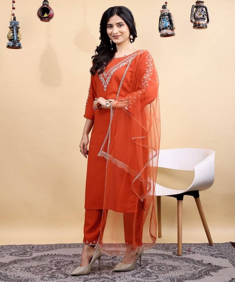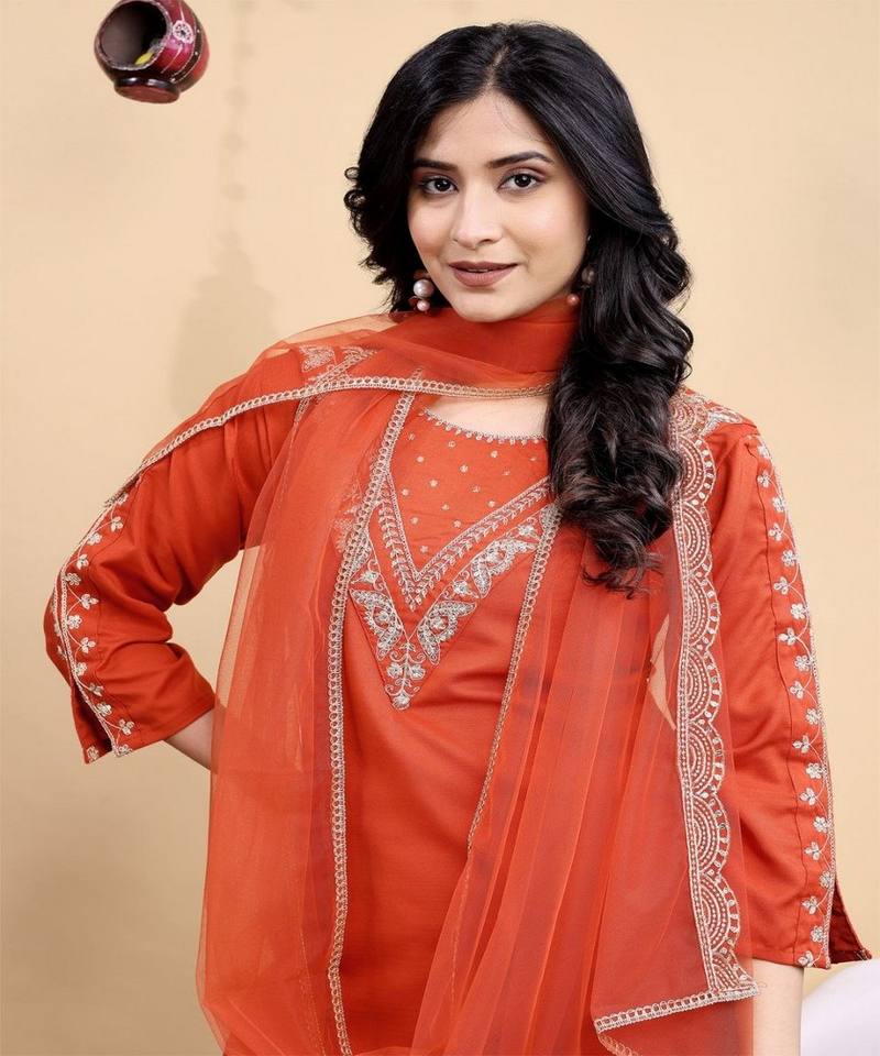 ชุดเสื้อผ้าปักลายแฟนซีผ้าฝ้ายผสม พร้อมกางเกงและผ้าคลุมไหล่ สำหรับงานเทศกาล ราคาขายส่ง เสื้อผ้าชาติพันธุ์ สีส้ม