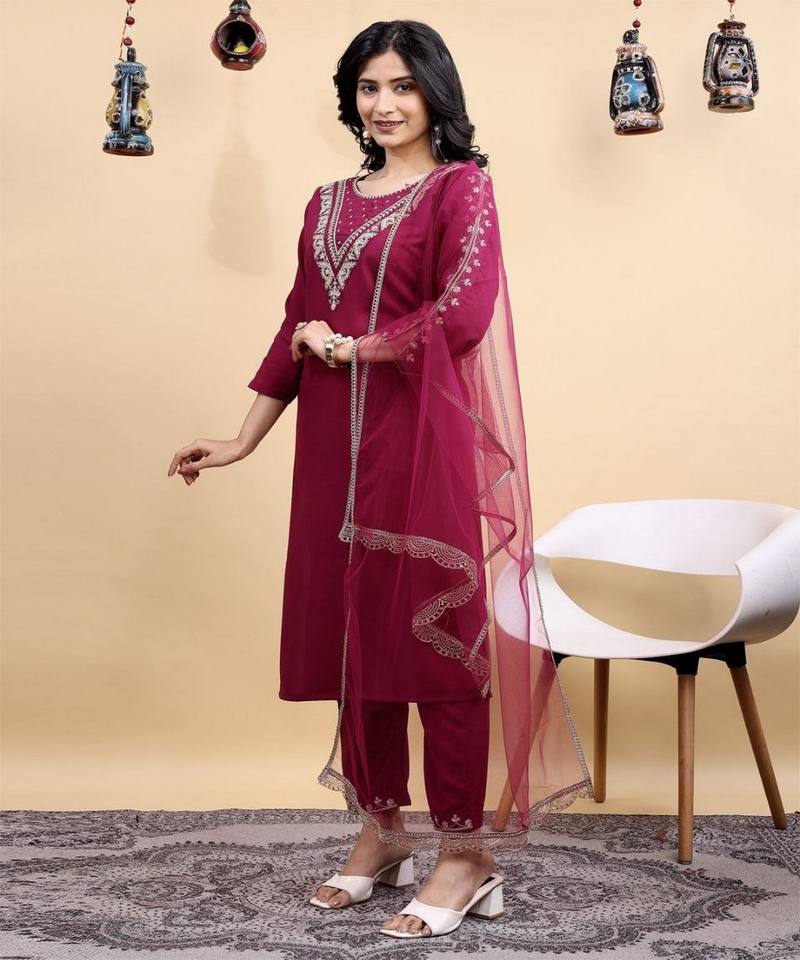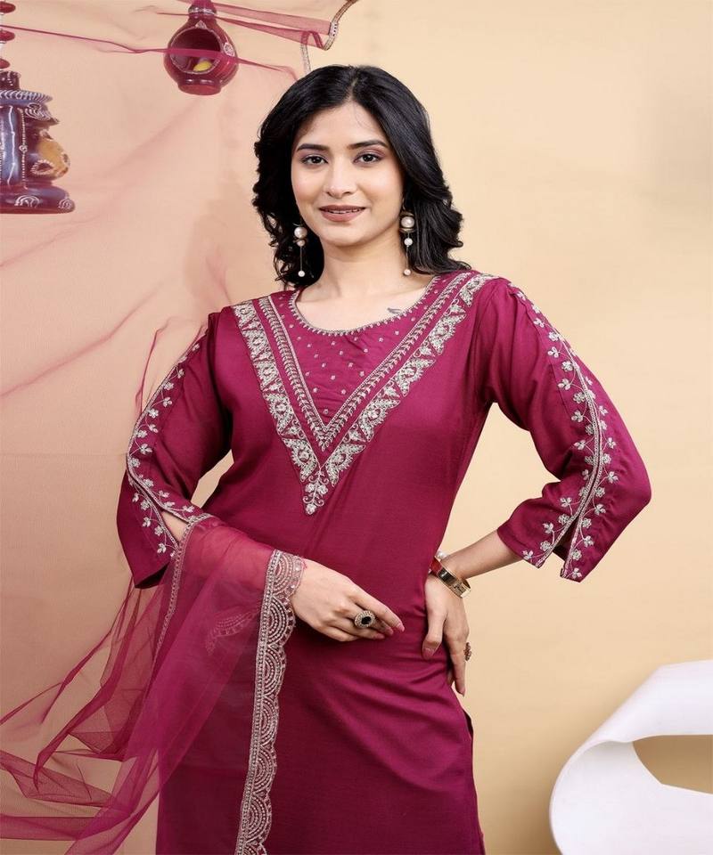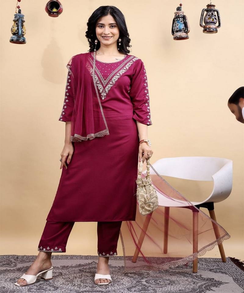 ชุดเสื้อผ้าปักลายแฟนซีผสมผ้าฝ้าย พร้อมกางเกงและผ้าคลุมไหล่ สำหรับงานเทศกาล ราคาขายส่ง เสื้อผ้าชาติพันธุ์ สีไวน์