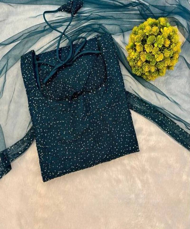 เสื้อตาข่ายปักลายผีเสื้อแฟนซีเสื้อผ้าชาติพันธุ์สีเขียวเป็ด