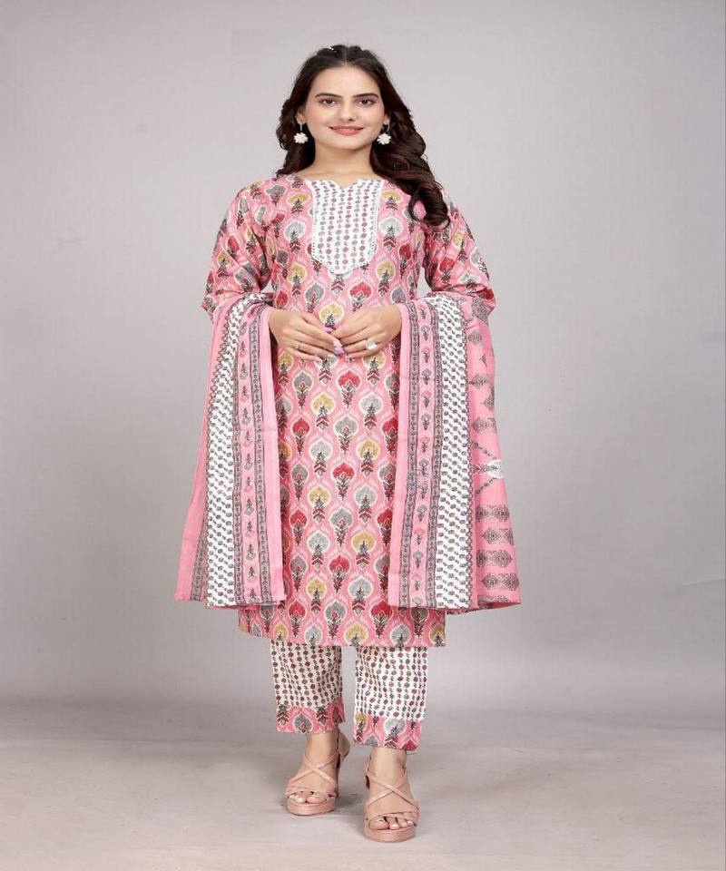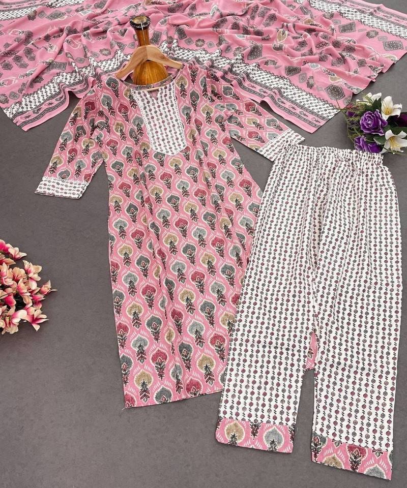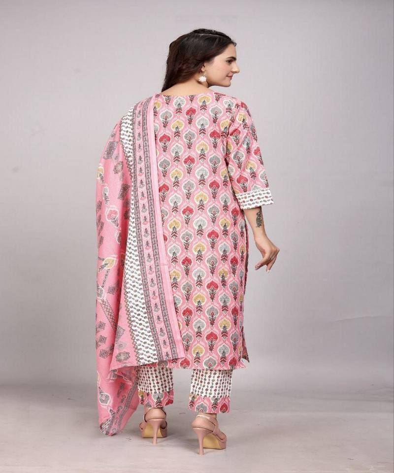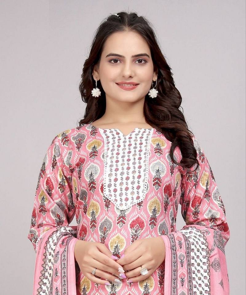 ชุดเสื้อผ้าฝ้ายผสมพิมพ์ลายฟอยล์สุดหรู พร้อมผ้าคลุมไหล่ สำหรับใส่ทุกวัน ราคาขายส่ง เสื้อผ้าชาติพันธุ์ สีชมพู