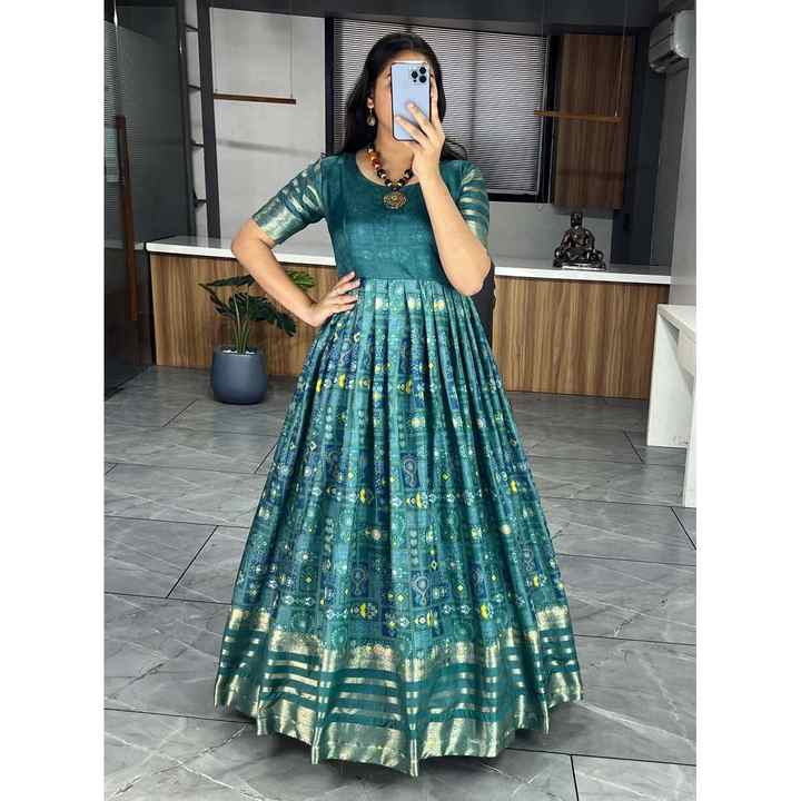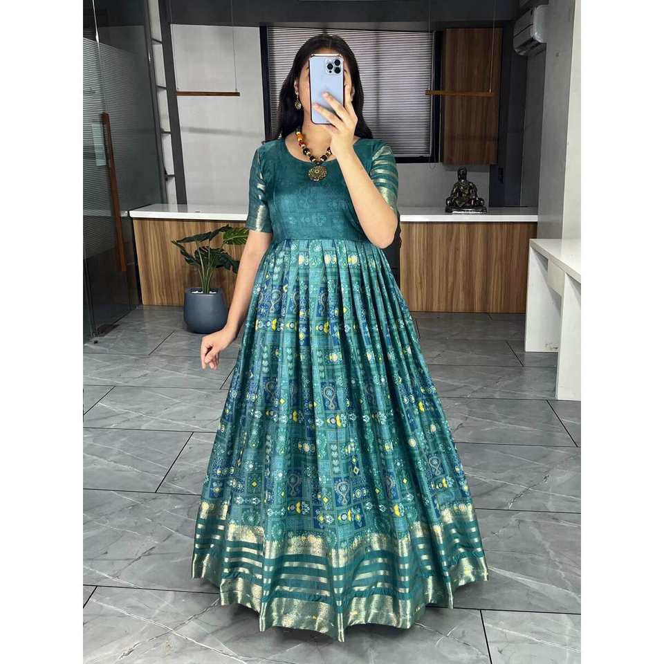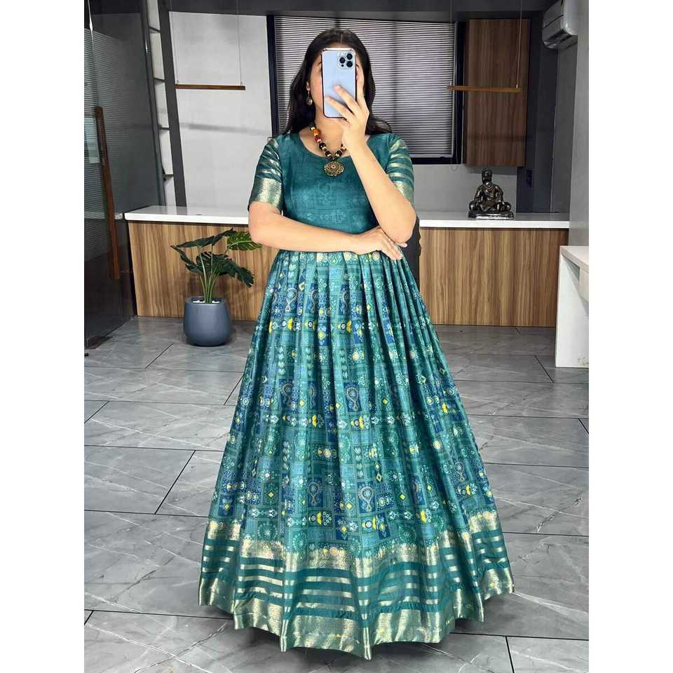 ชุดกระโปรงยาวผ้าฝ้ายขอบพิมพ์ลายดอกไม้ผ้าคอตตอนแฟนซี