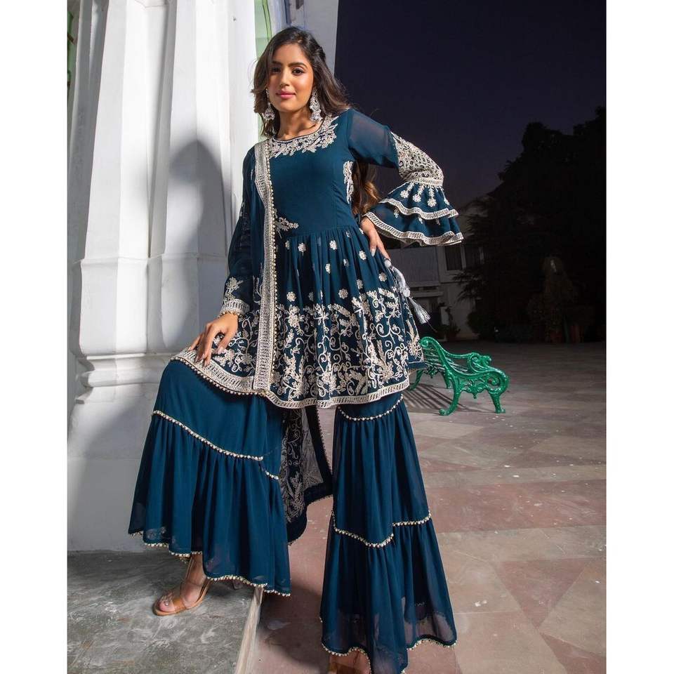 เสื้อลูกไม้ปักลวดลายสวยงามผ้าจอร์เจียพร้อมสีฟ้า