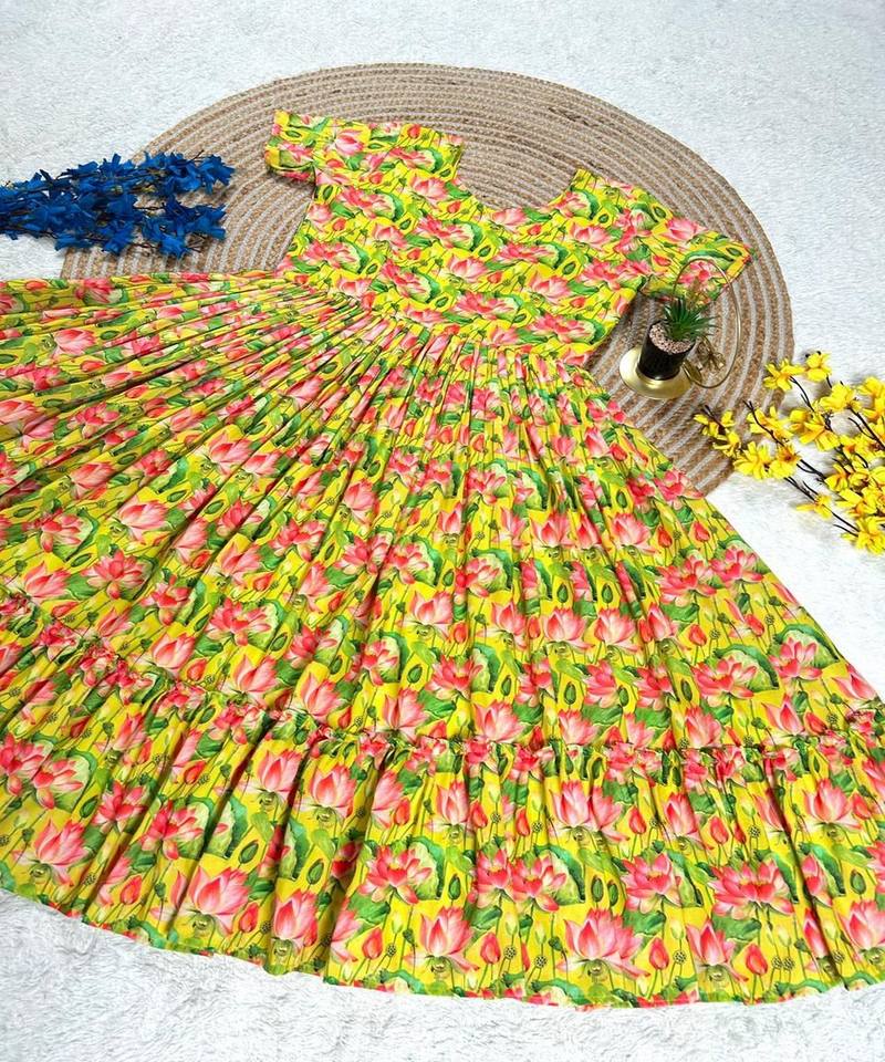 ชุดเดรสผ้ามัสลินพิมพ์ลายดอกไม้ แฟนซี สวมใส่ได้ทุกวัน ราคาขายส่ง เสื้อผ้าชาติพันธุ์สีเหลือง สไตล์อินเดีย แห้งเร็ว