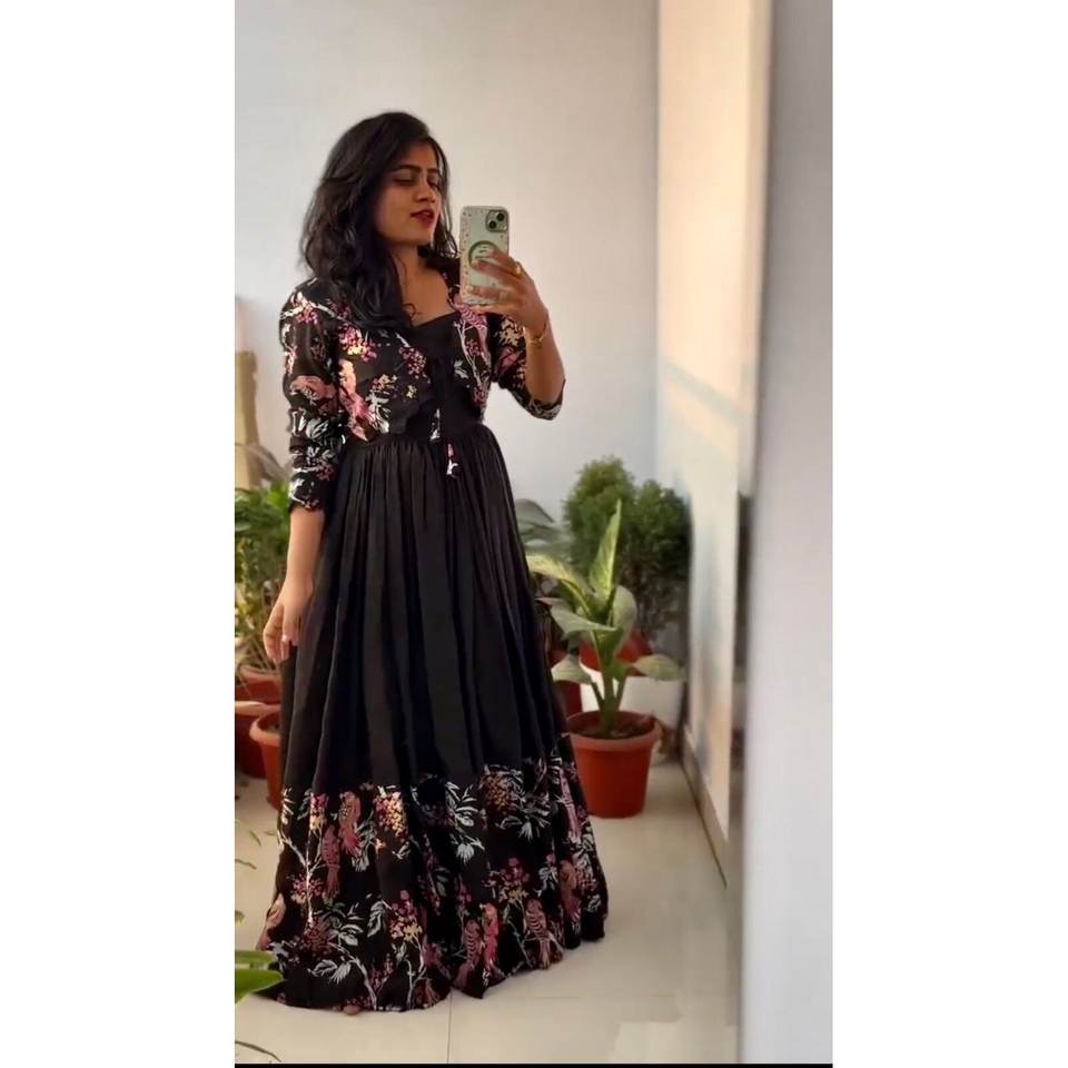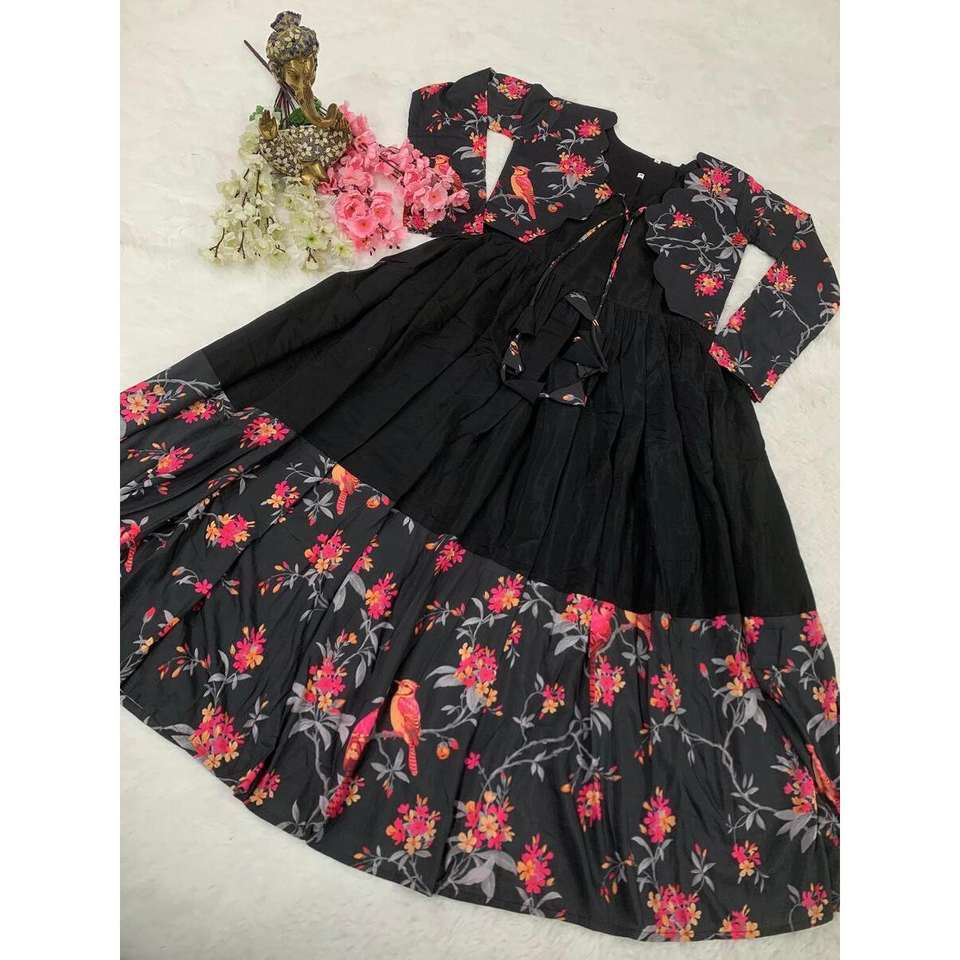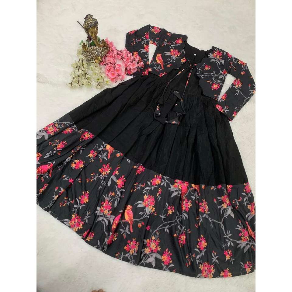 ชุดผ้าไหมพิมพ์ลายแฟนซีโรมันพร้อมโกติสีดำ