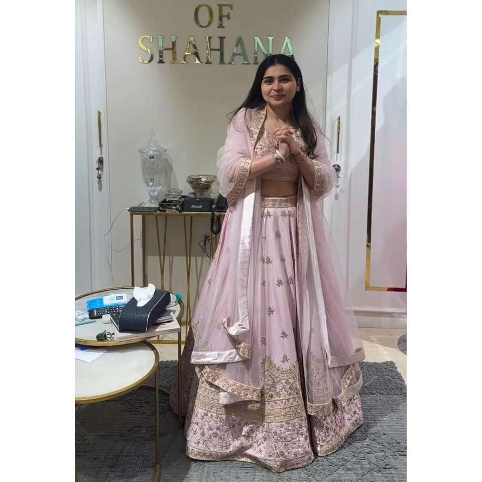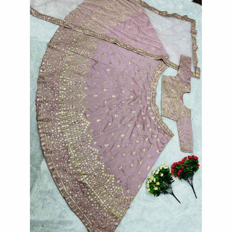 งานปักลวดลายด้วยไหมแบบหรู lehenga choli กับ dupatta สีชมพู
