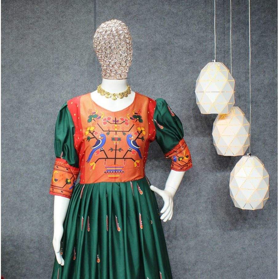 FANCY SILK PATOLA DIGITAL PRINT GOWN GREEN