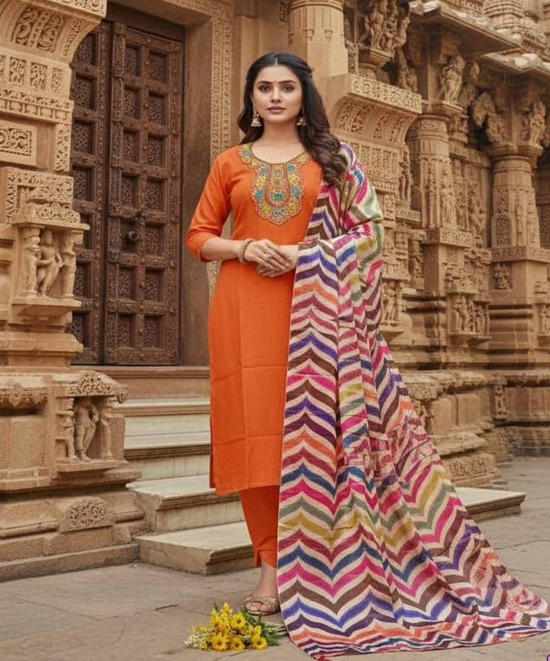FANCY SLUB COTTON EMBROIDERY WORK TOP BOTTOM DUPATTA FESTIVE WEAR WHOLESALE PRICE ETHNIC GARMENT Multi Color Ladies Quick Dry
