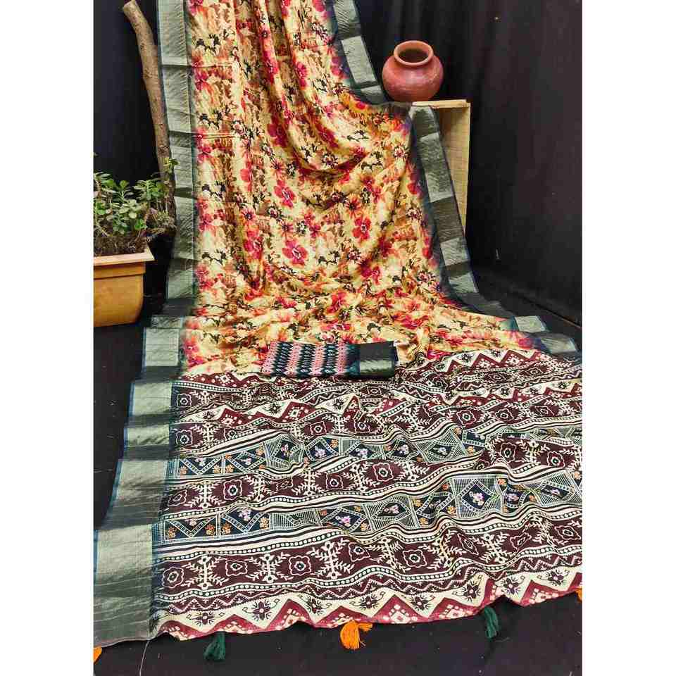 ผ้าส่าหรีเนื้อผ้าไหมนุ่มพิมพ์ลายดิจิตอลผ้าทอลาย zari ผ้านิ่มสำหรับใส่ทำงาน