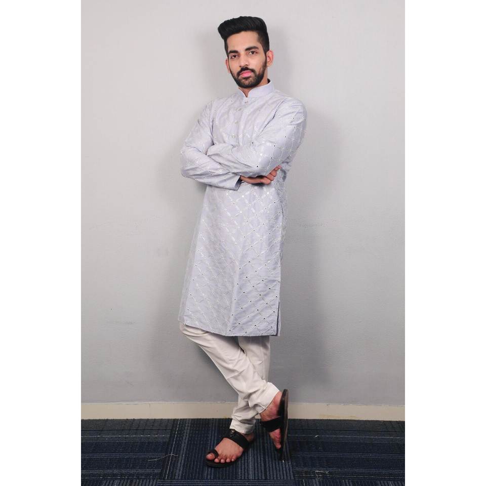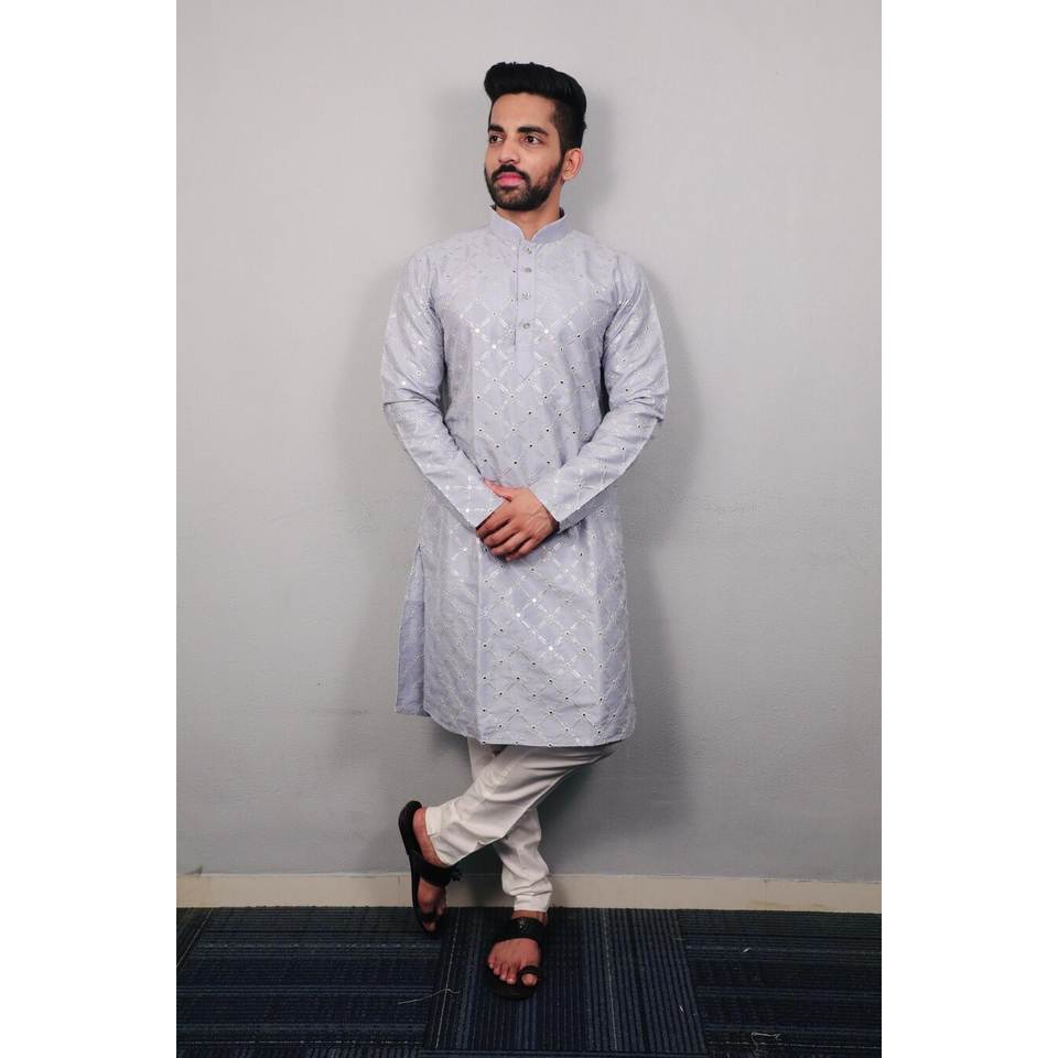 ชุดกระโปรงผ้าไหมนุ่มสำหรับผู้ชายปักลายพร้อมชุดนอนสีขาว
