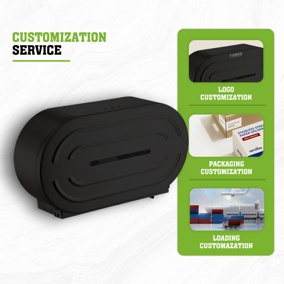 ที่ใส่กระดาษชำระแบบติดผนัง FANDA รุ่น Eco-Friendly Modern ขนาดมินิจัมโบ้ วัสดุเหล็ก ผิวสีดำ สำหรับสำนักงาน สถานีรถไฟ