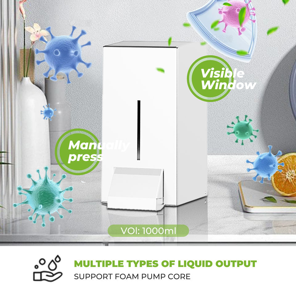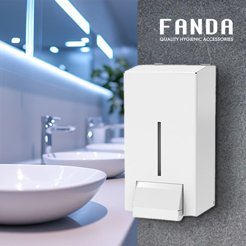 FANDA เครื่องจ่ายสบู่เหลวแบบติดผนังที่ทันสมัยและเป็นมิตรกับสิ่งแวดล้อม ความจุ 1000 มล. โครงสร้างสแตนเลส