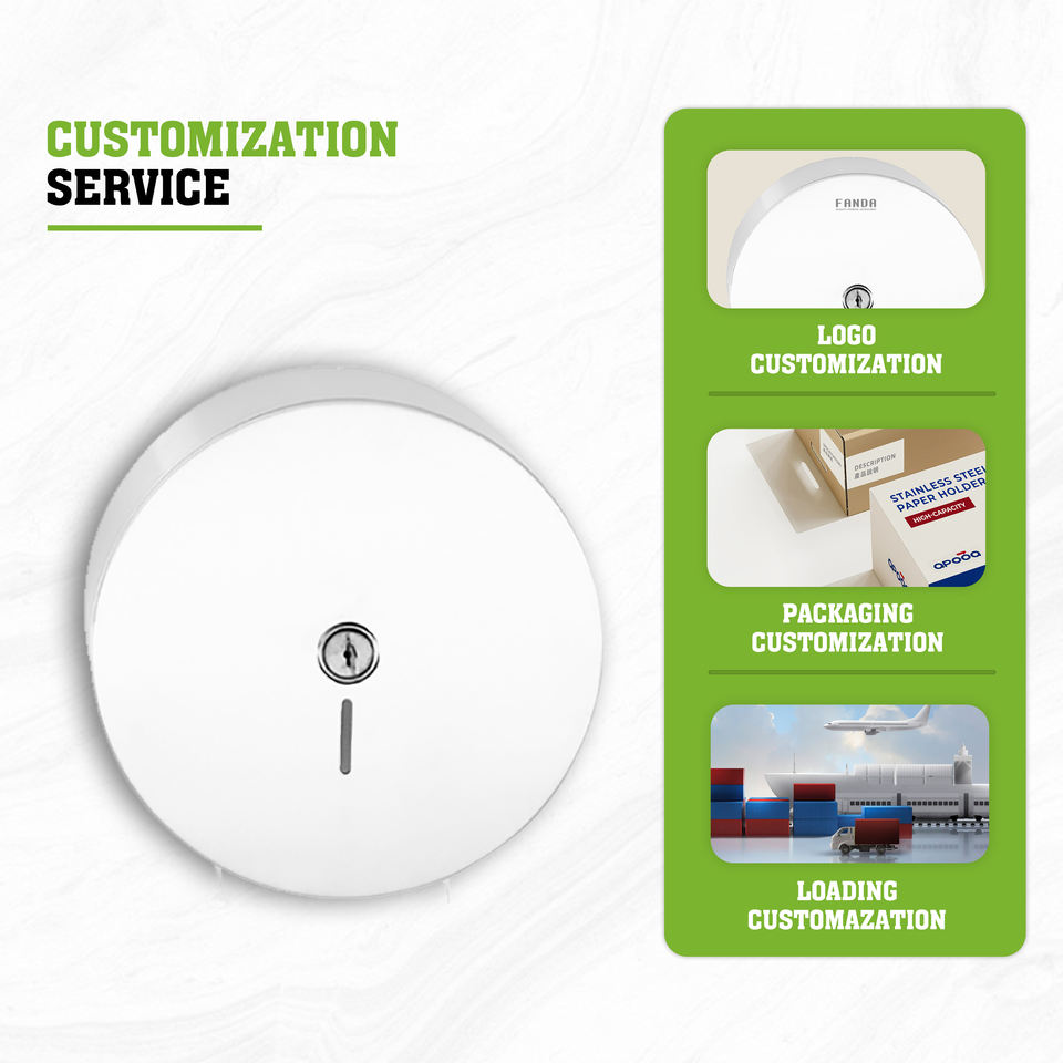 ที่ใส่กระดาษชำระแบบม้วนใหญ่ติดผนัง FANDA รุ่นโมเดิร์น ผลิตจากเหล็ก ทนทาน เป็นมิตรกับสิ่งแวดล้อม สีขาว สำหรับใช้ในสำนักงาน