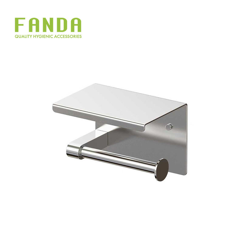 FANDA MADE IN TAIWAN STAINLESS STEEL TOILET TISSUE ROLL DISPENSER WITH PHONE SHELF