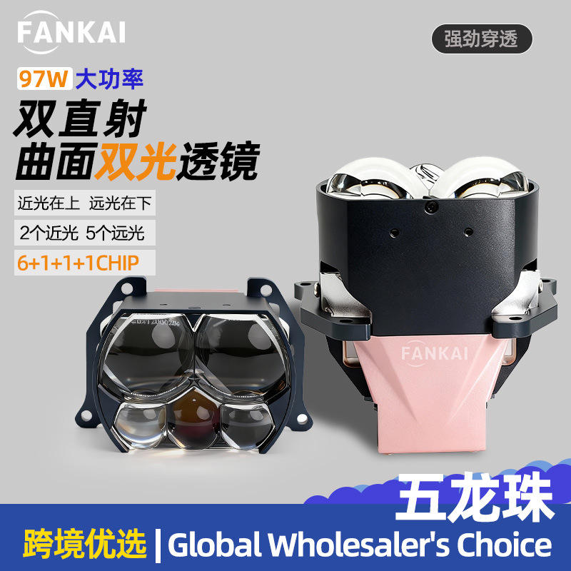 ไฟหน้ารถยนต์โปรเจคเตอร์ LED Bi-xenon กำลังสูง 97W รุ่น FANKAI Five Dragon Ball Square Mirror ให้ความสว่างสูง ไฟสูง/ต่ำ