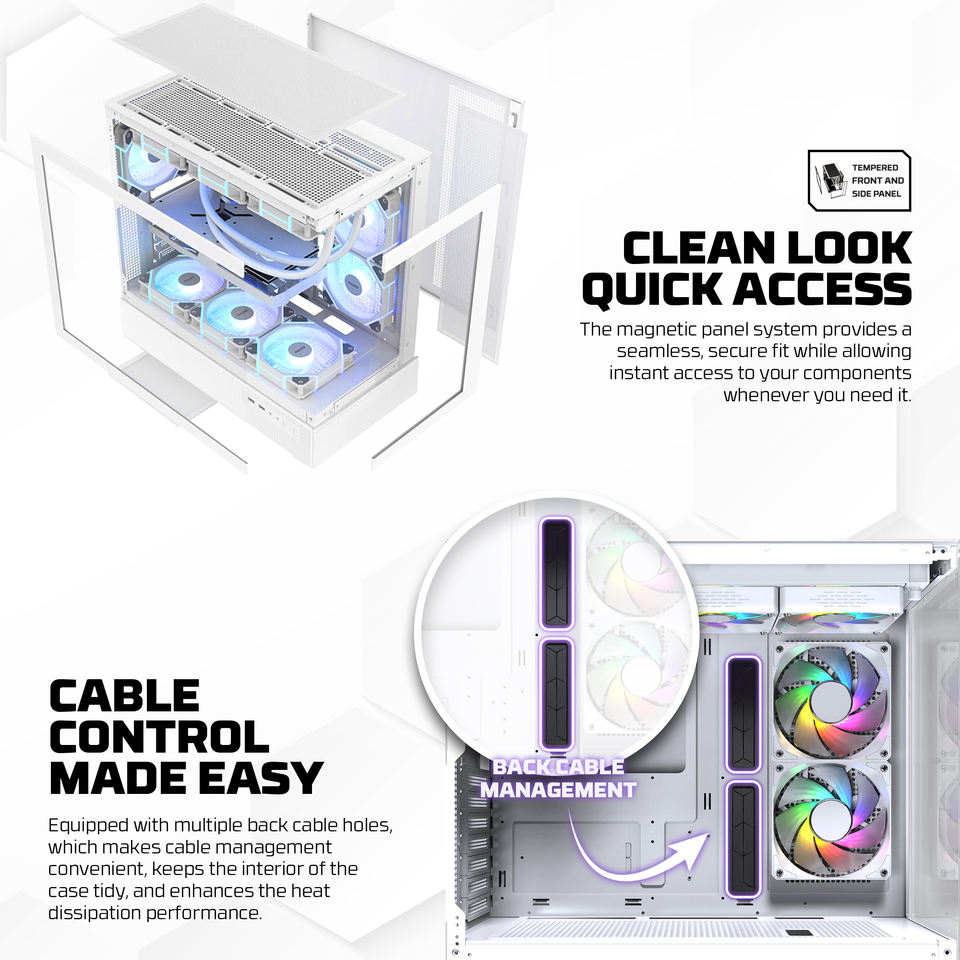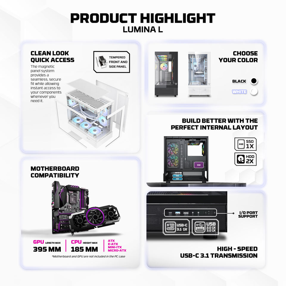Fantech เคส CG86เกม GPU ATX 395มม., เคสคอมพิวเตอร์แบบทาวเวอร์270องศาพาโนรามาเข้าถึงได้อย่างรวดเร็วเคสพีซีกระจกนิรภัย