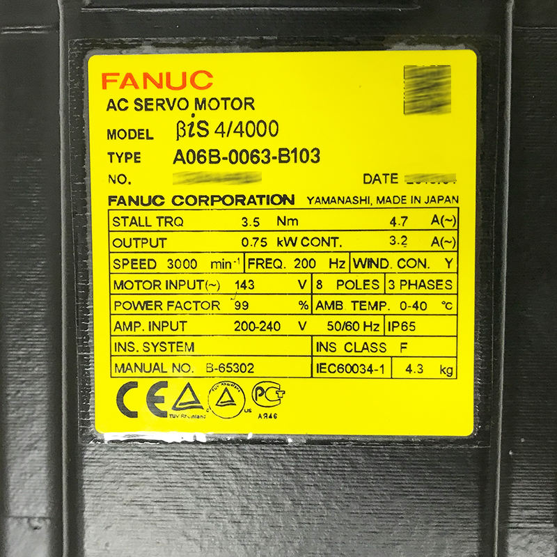 FANUC A06B-0063-B103 ซีรีส์อัลฟ่า เซอร์โวมอเตอร์ AC