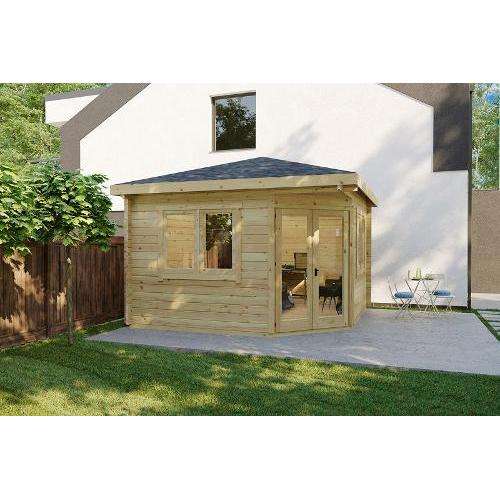 FARGO Eco-Friendly 12M² 44MM Corner Garden Studio Easily Assembled Wooden Garden Chalet for Patio or Backyard Storage Shed