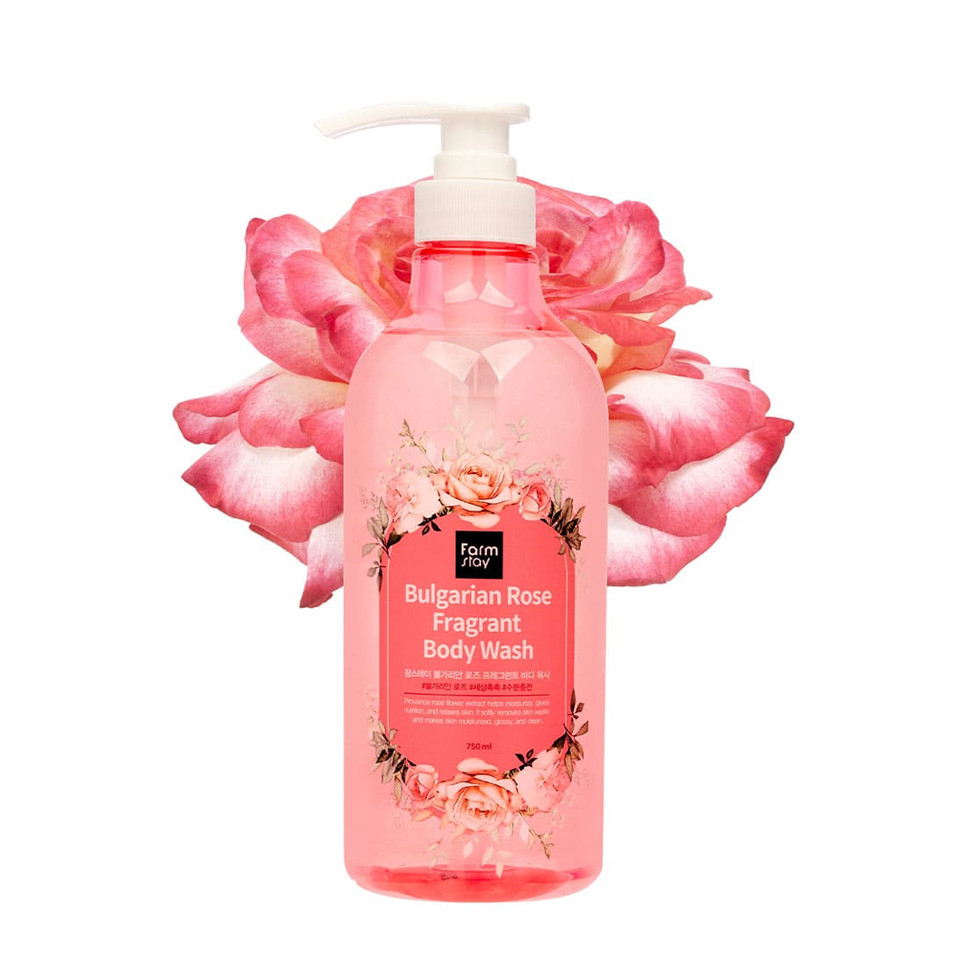 FARMSTAY เครื่องล้างกลิ่นดอกกุหลาบสไตล์บัลแกเรีย,ทำจากเครื่องสำอางเกาหลีมีส่วนผสมจากธรรมชาติล้างตัวหลังจากมอยซ์เจอไรเซอร์
