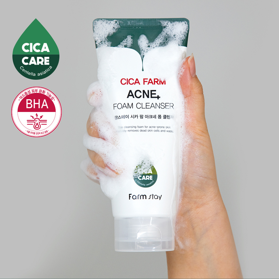FARMSTAY CICA FARM ACNE FOAM CLEANSER - Made in Korean Cosmetic - Acne Care Deep Cleansing Moisturizing Nourishing Firming