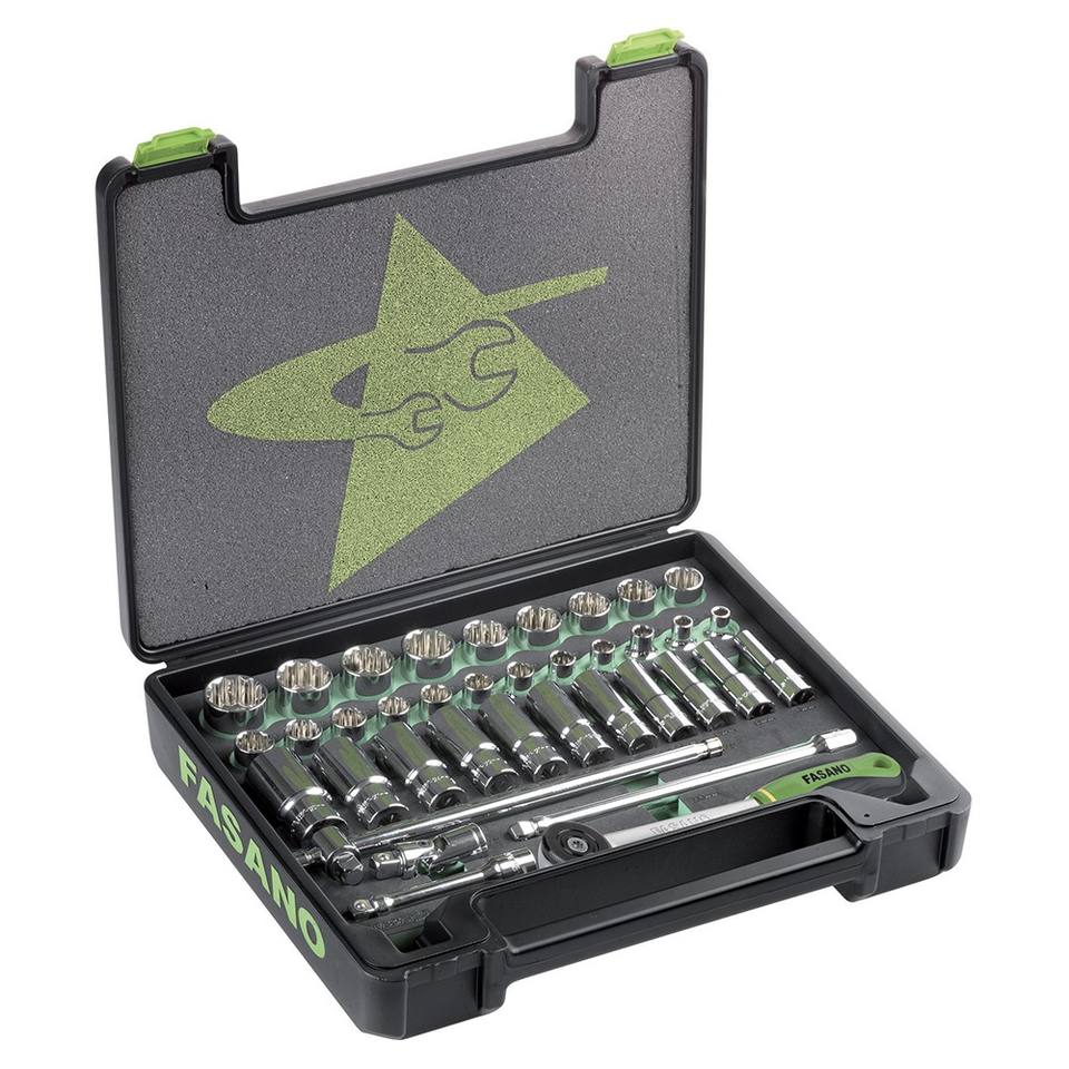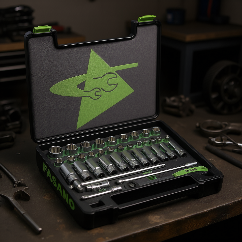 ชุดซ็อกเก็ต FASANO 37 ชิ้น เหล็กโครเมี่ยมวาเนเดียม สำหรับซ่อมรถยนต์