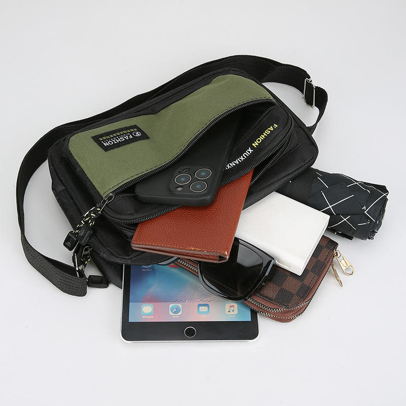 กระเป๋าสะพายไหล่แฟชั่นผู้ชาย xuxianxilie สีเขียวทหารไนลอนกระเป๋าสะพายข้างความจุขนาดใหญ่สำหรับการเดินทางธุรกิจการใช้งาน