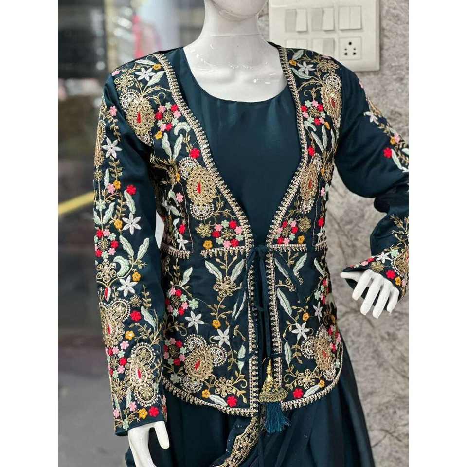 ชุดคลุมคางแฟชั่นพร้อมเสื้อแจ็กเก็ตใส่ทำงานปักลายสีเขียวเข้ม