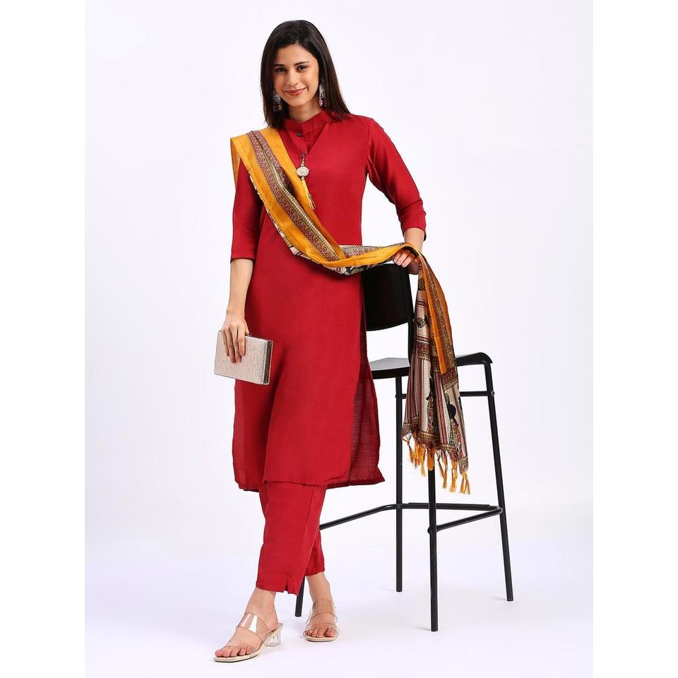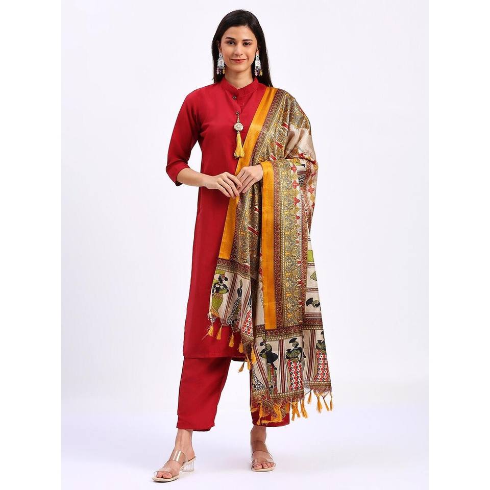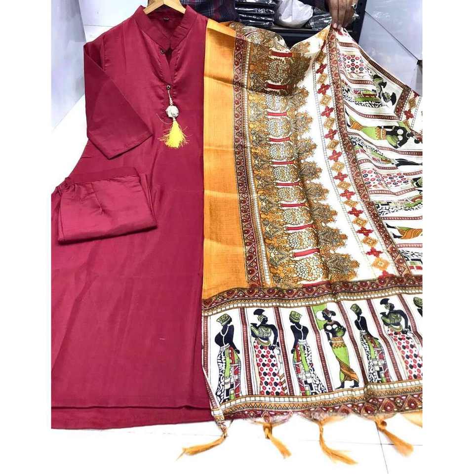 เสื้อทำงานผ้าคอตตอนพิมพ์ลาย jhalar พื้นล่างสุดทันสมัยมีสีแดง