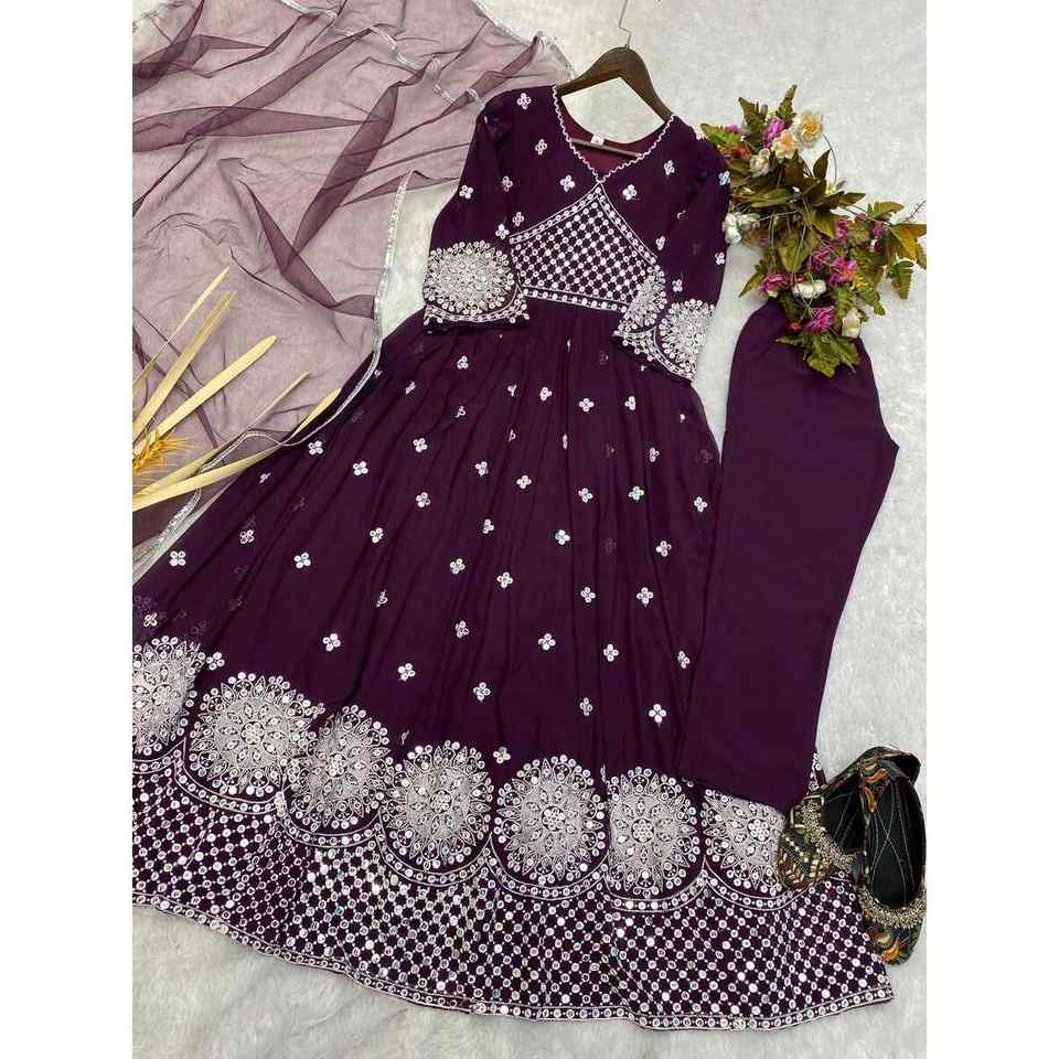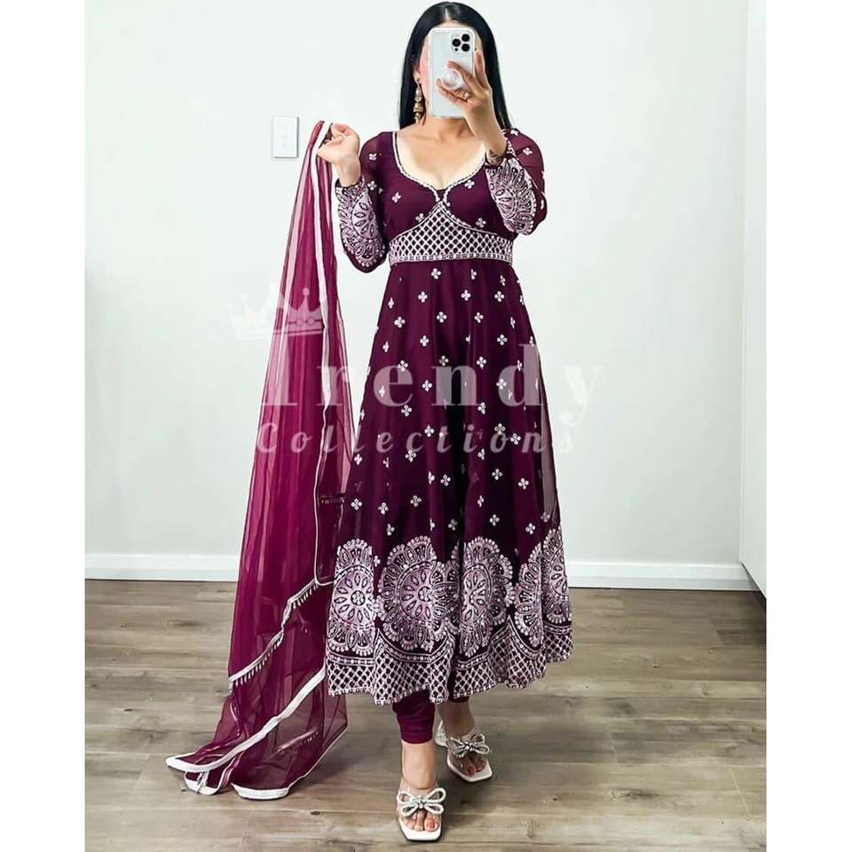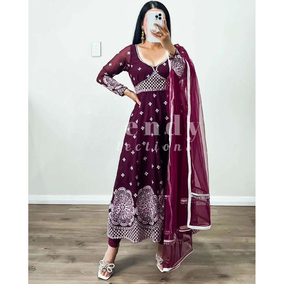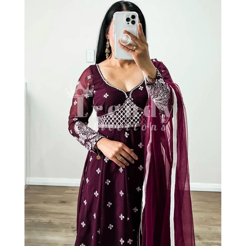 ชุดทำงานผ้าคอตตอนผ้าจอร์เจียประดับด้วยไวน์ dupatta