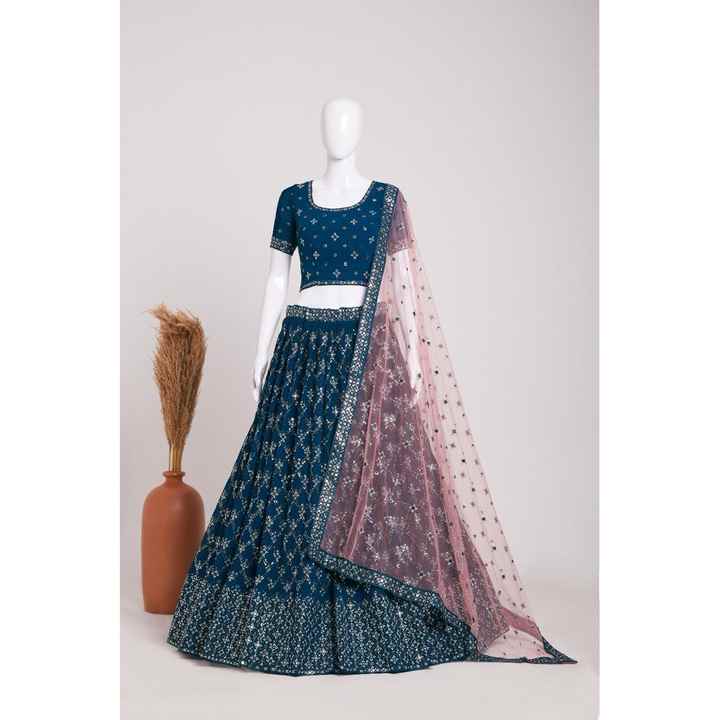 ผ้าจอร์เจียแบบมีลวดลายที่ทันสมัยผ้าชุด lehenga choli กับ dupatta rama