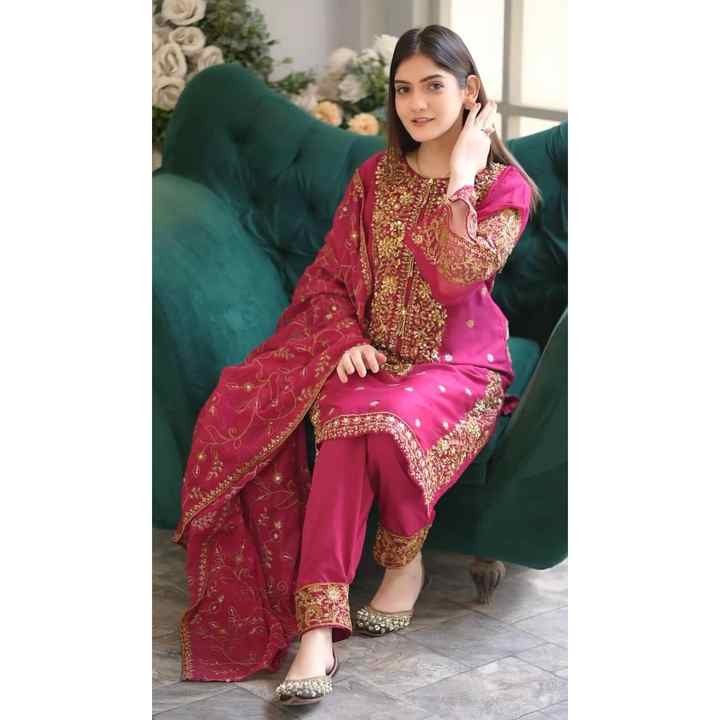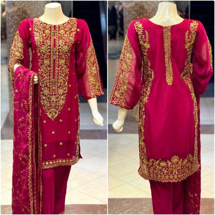 ชุดยูนิฟอร์มโรงพยาบาลสีชมพู ผ้าจอร์เจียต์ปักลายประดับเลื่อม พร้อมกางเกงและผ้าคลุมไหล่