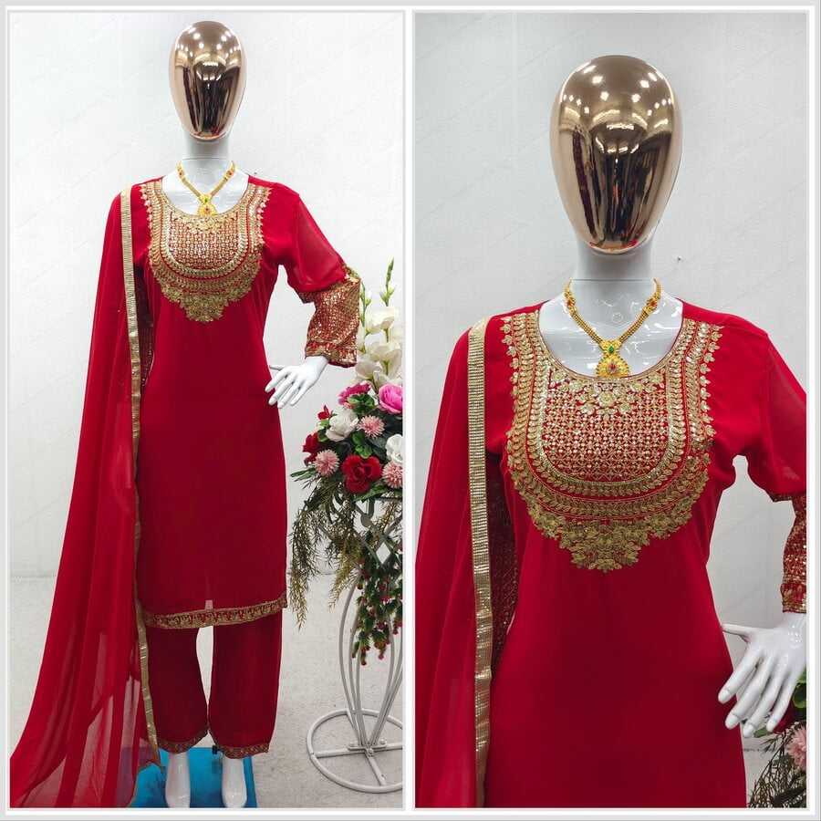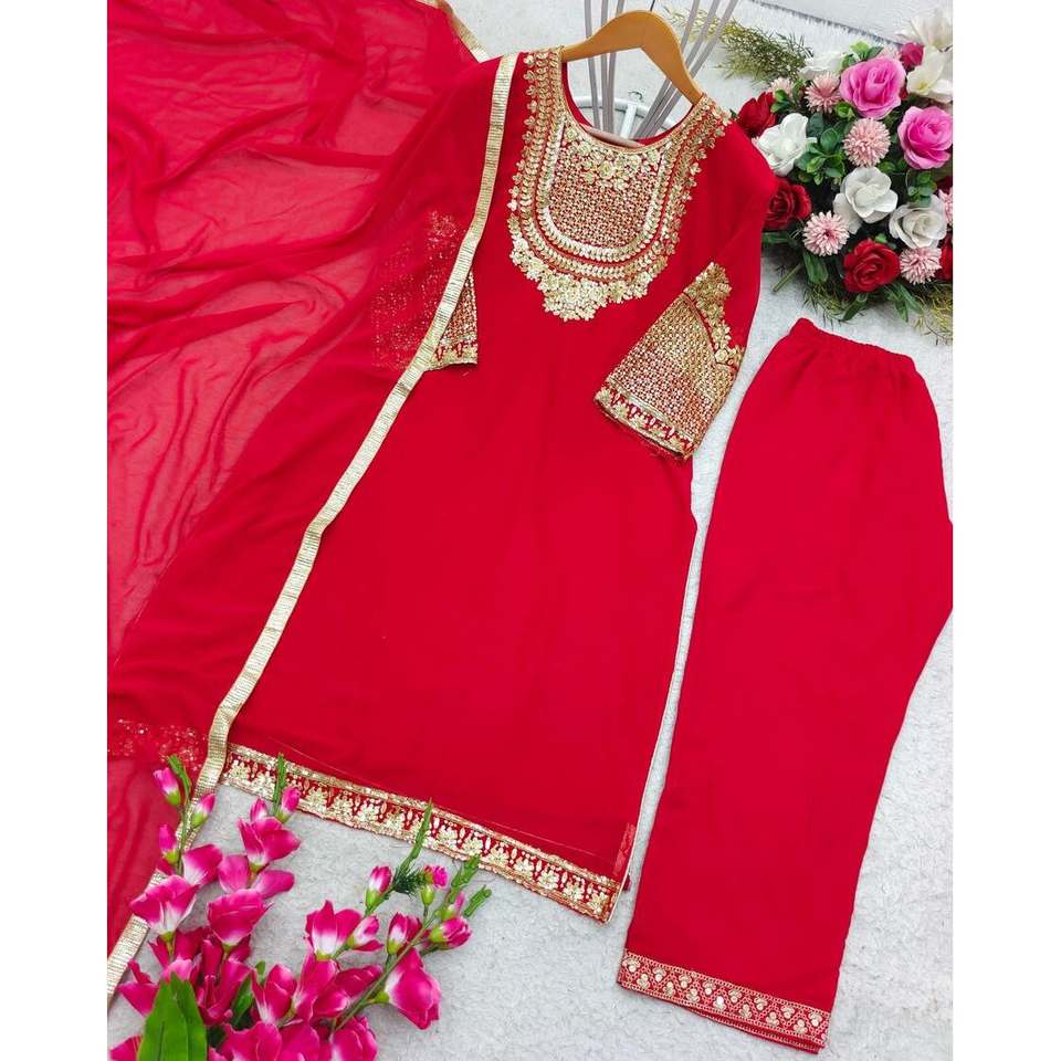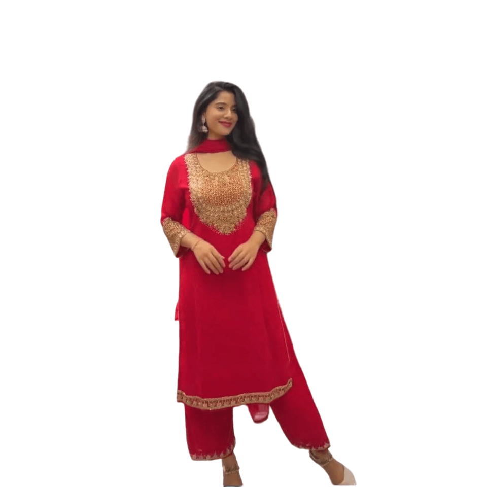 ผ้าจอร์เจียเจ็ตปักลวดลายตามสมัยนิยมมีสีแดงเข้ม