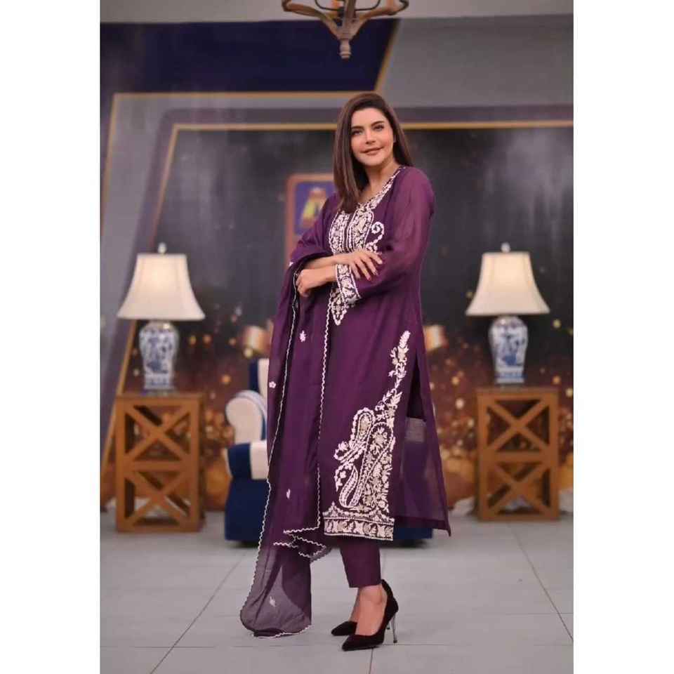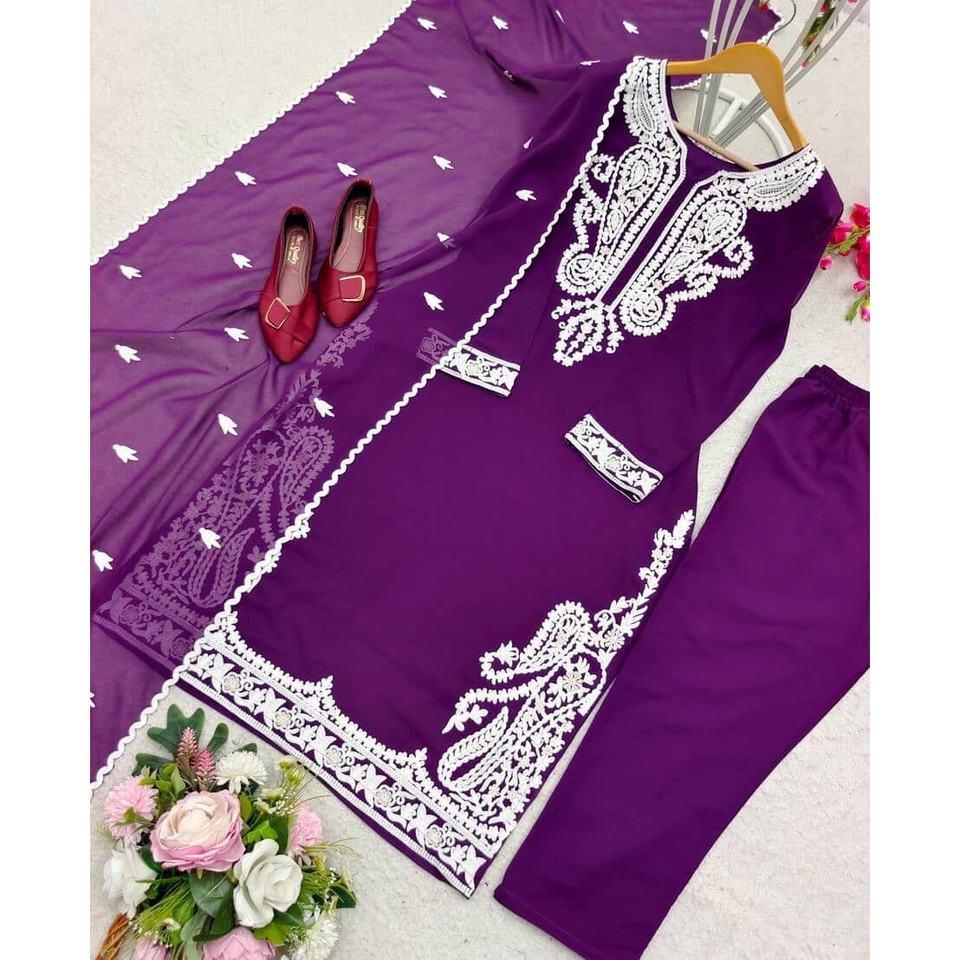 ผ้าจอร์เจียแวววาวปักลายสไตล์แฟชั่นพื้นล่างสุดด้วยสีม่วงดูปองตา
