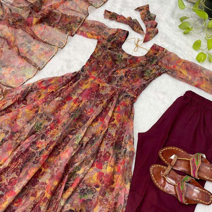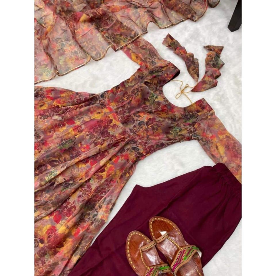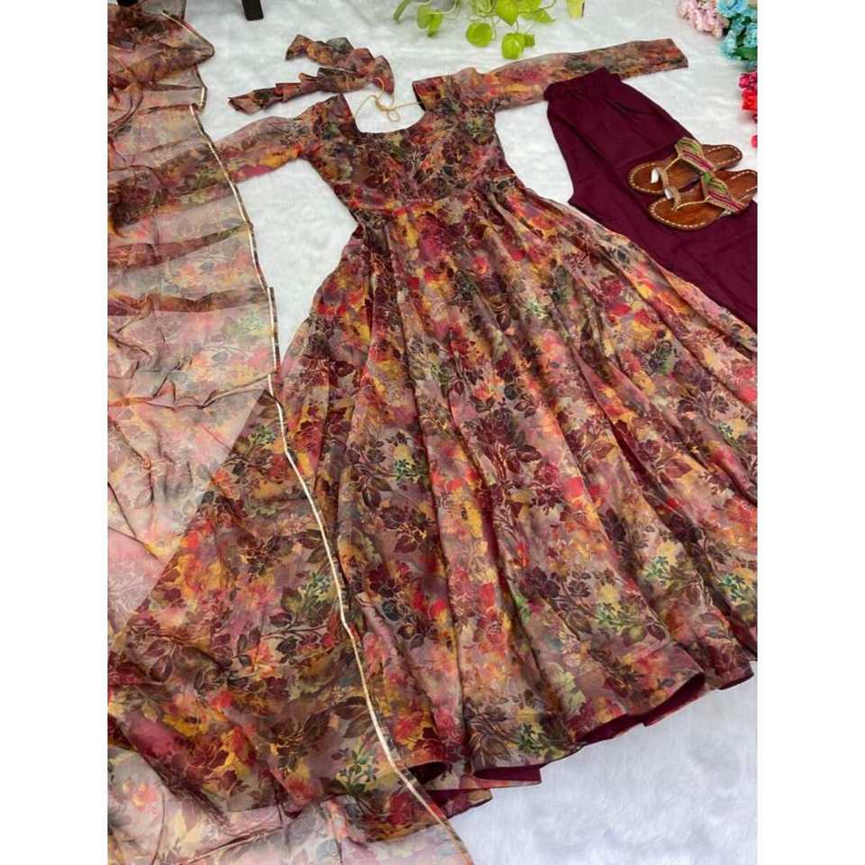 ชุดราตรีพิมพ์ลายดิจิทัลผ้าโปร่งบางทันสมัยมีสีพีช dupatta