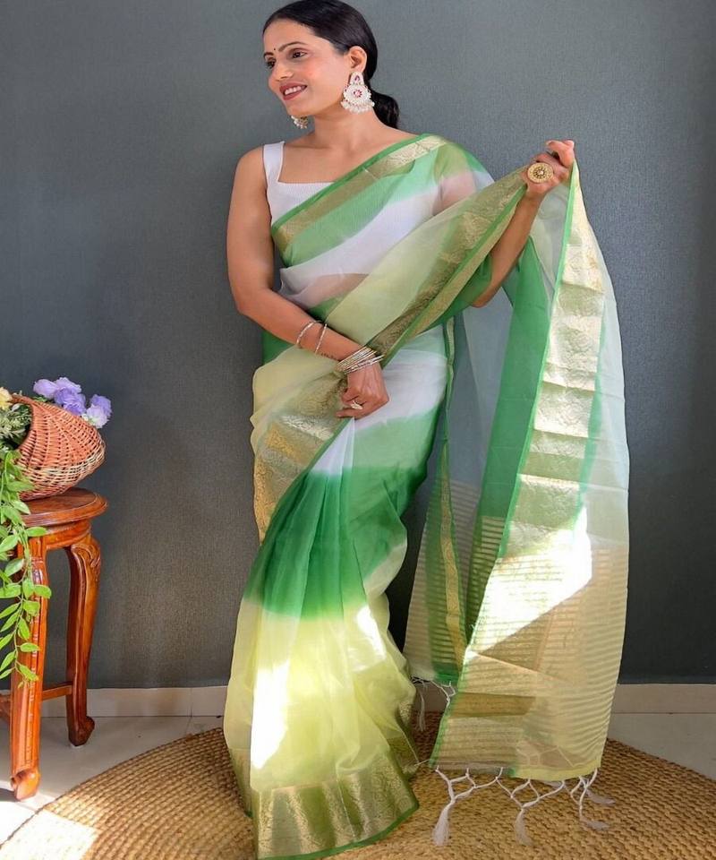 ซาริทอผ้าโปร่งบางผ้าแจ็คการ์ดผ้าโปร่งบางทันสมัยเสื้อเบลาส์ไม่ตัดเย็บตามเทศกาลเสื้อผ้าชาติพันธุ์สีเขียว
