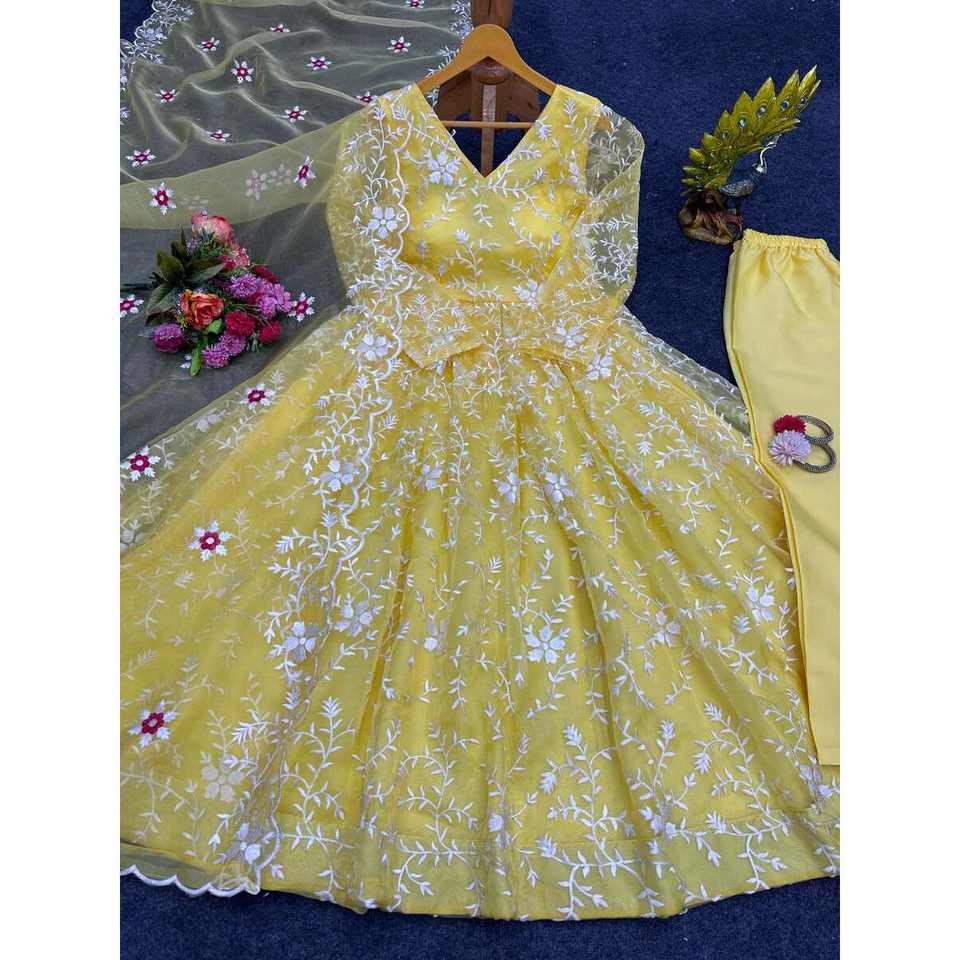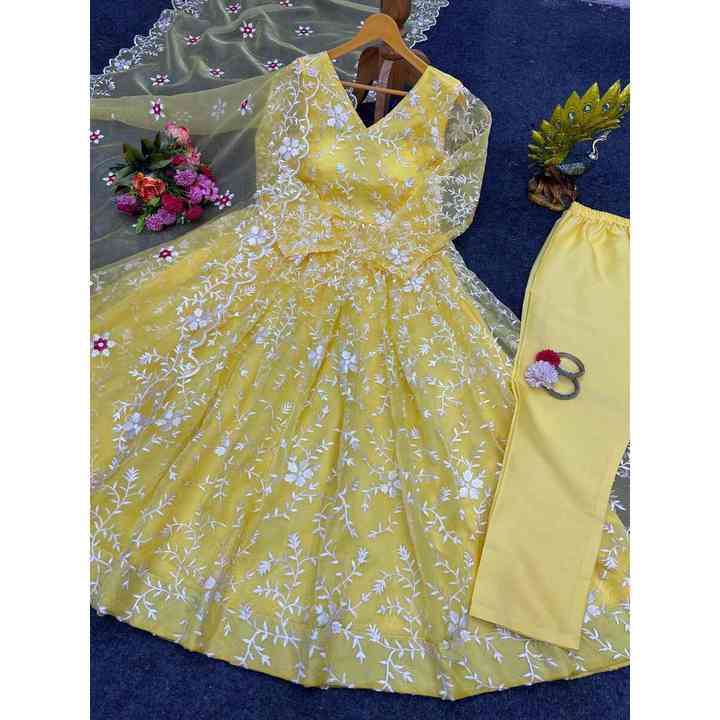 ชุดทำงานด้ายออร์แกซซ่าด้านล่างมีสีเหลืองดูปองตา