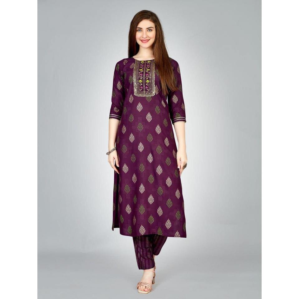 ชุดไวน์พิมพ์ลายเรยอนฟอยด์แฟชั่นพร้อมงานปัก
