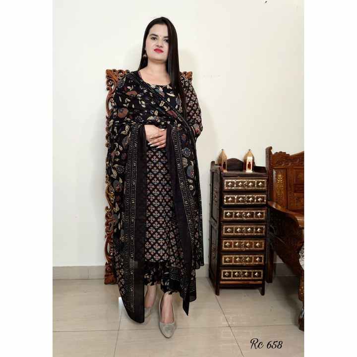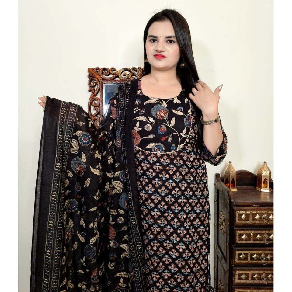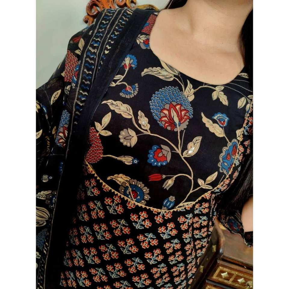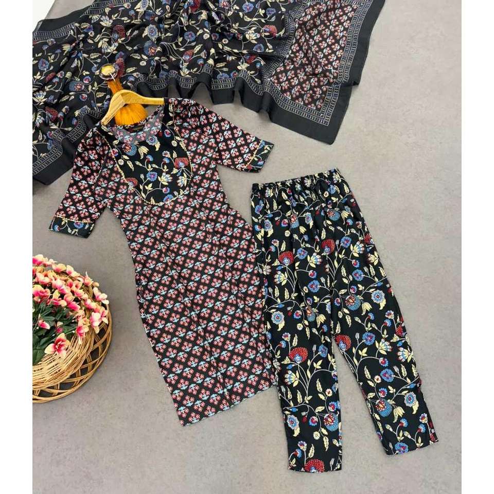 แฟชั่นเรยอนพิมพ์ลายบนด้านล่างพร้อมสีดำ dupatta