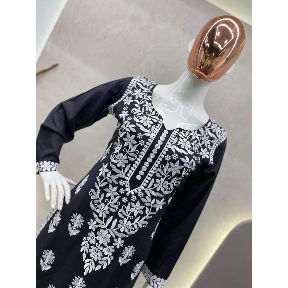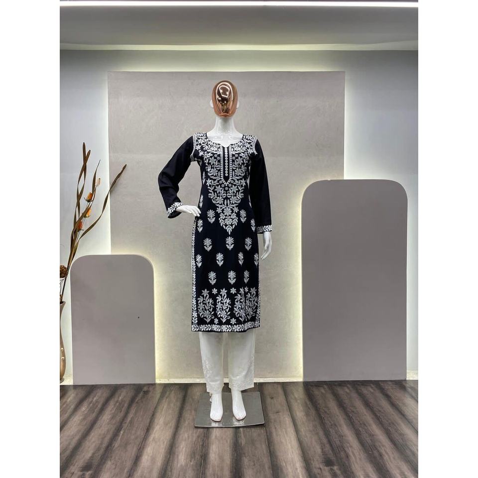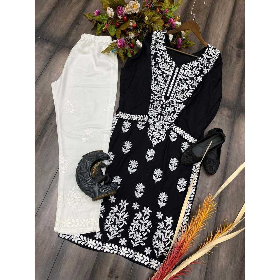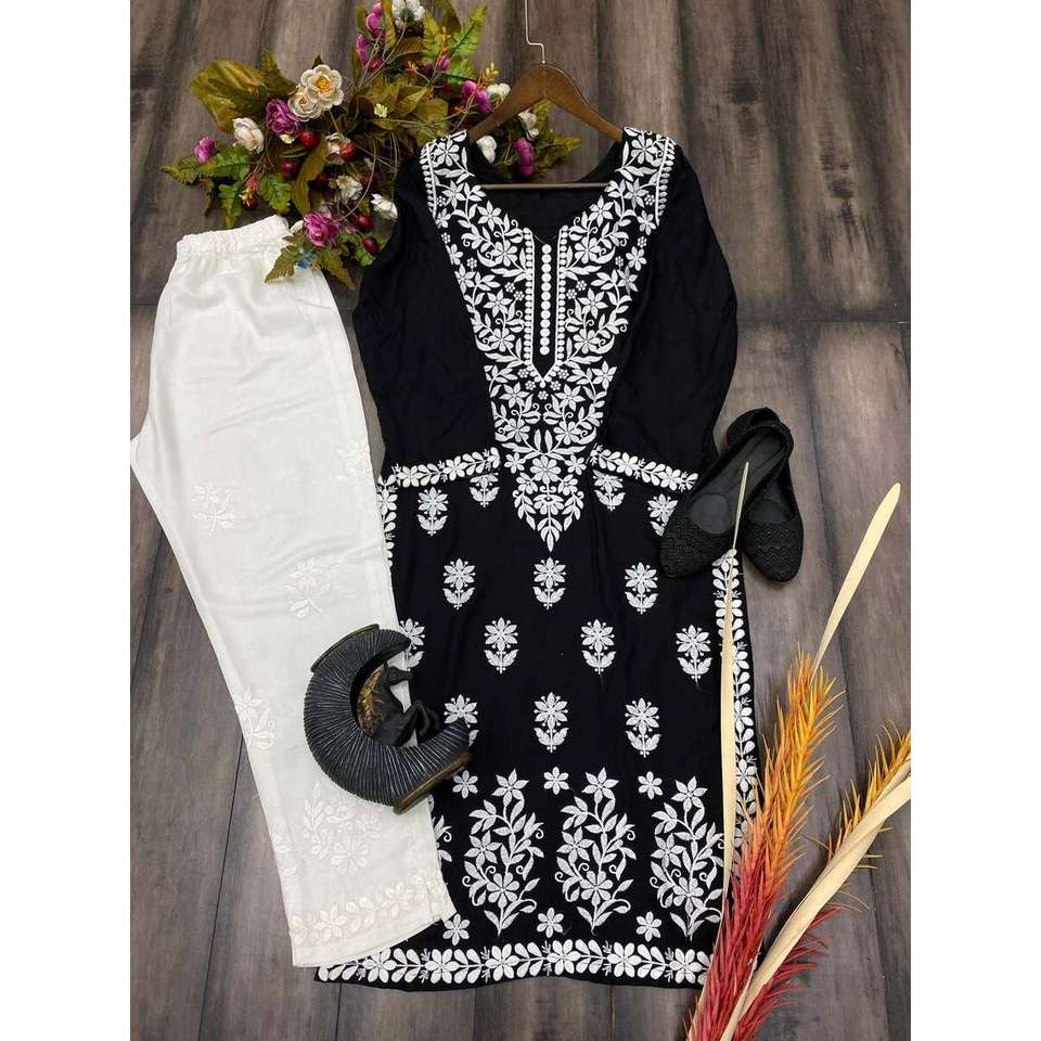 งานปักด้ายเรยอนแฟชั่นพร้อมพาลาซโซสีดำ