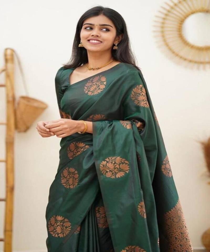 FASHIONABLE SOFT LICHI SILK JACQUARD WORK SAREE WITH UNSTITCHED BLOUSE FORMAL WEAR WHOLESALE PRICE ETHNIC GARMENT GREEN